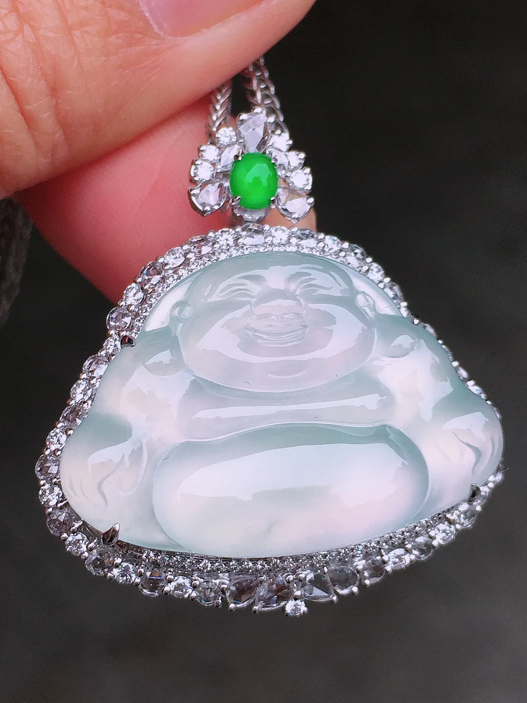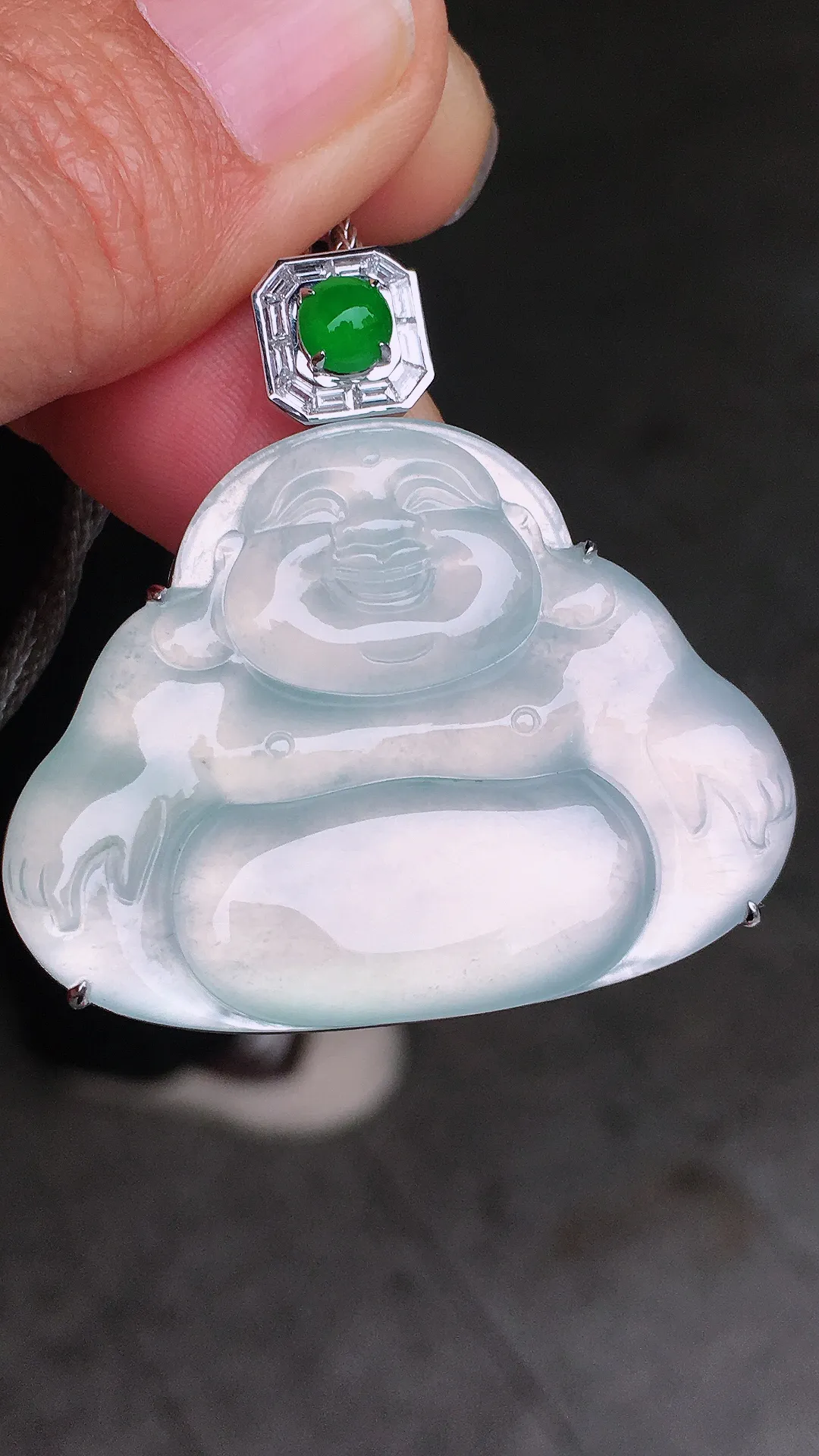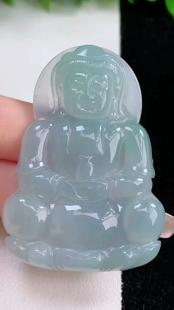 自然光实拍,冰润飘绿翡翠保平安观音菩萨吊坠,玉质莹润,佩戴佳品,#46.22