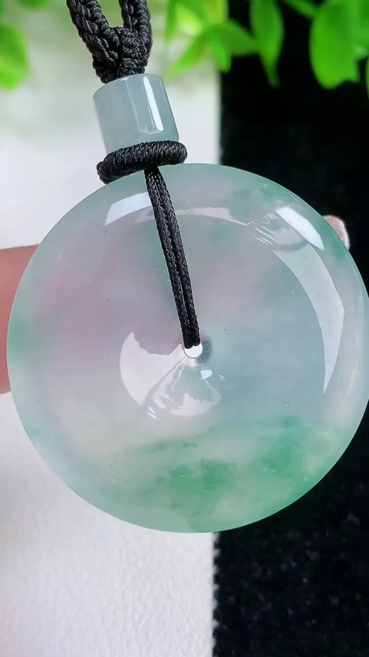 天然A货翡翠种飘花平安扣吊坠,尺寸34.3-6,重量:18.29g 1月25日