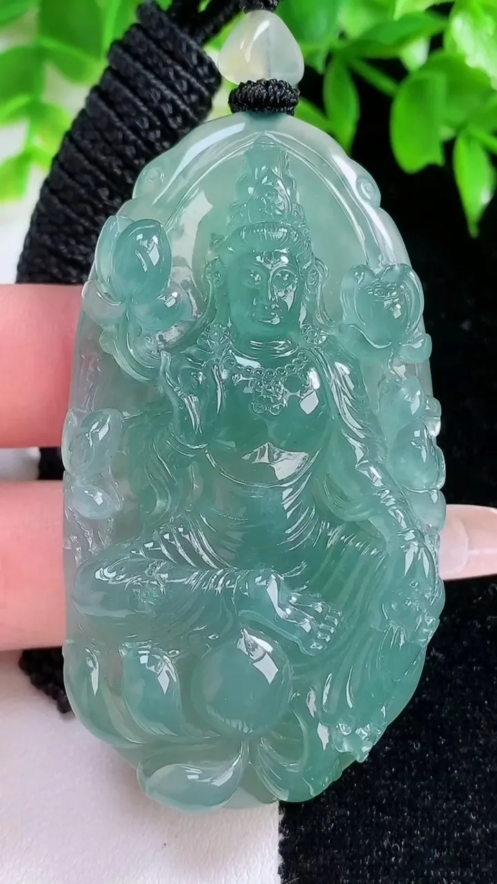 天然A货翡翠大势至菩萨吊坠,尺寸64.2-35-9.4,重量:47.77g 1月25日