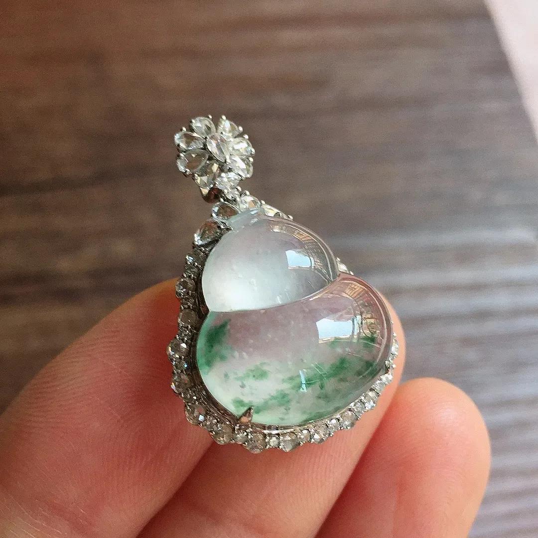 冰飘花葫芦吊坠,18k金镶嵌,冰润饱满,玉质细腻,种水足,Ym2 尺寸29.7*20.2*10.5
