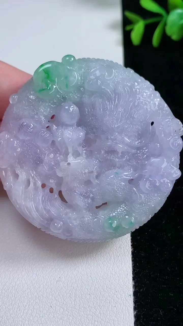 天然A货翡翠春带彩紫罗兰龙牌吊坠,尺寸56.2-9.8,重量:62.25g 11月15日