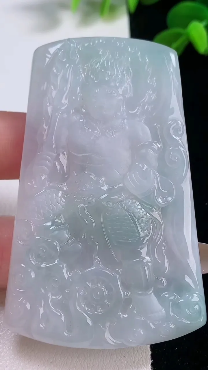 天然A货翡翠冰种飘花不动明王吊坠,尺寸67.6-42.2-5.3,重量:36.10g 11月19日