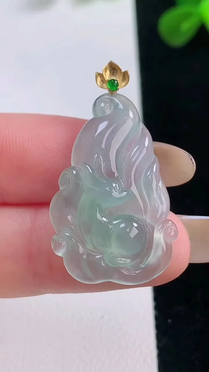 天然A货翡翠九尾狐吊坠,尺寸29.3-28.4-4.9,重量:3.87g 11月19日