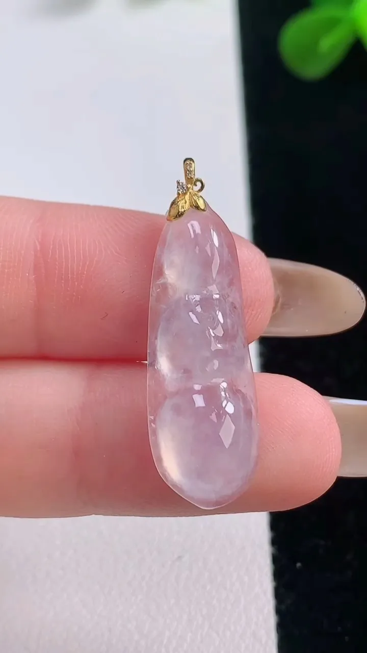 天然A货翡翠种白冰福豆吊坠,尺寸27.7-10-5.2,重量:2.41g 11月19日