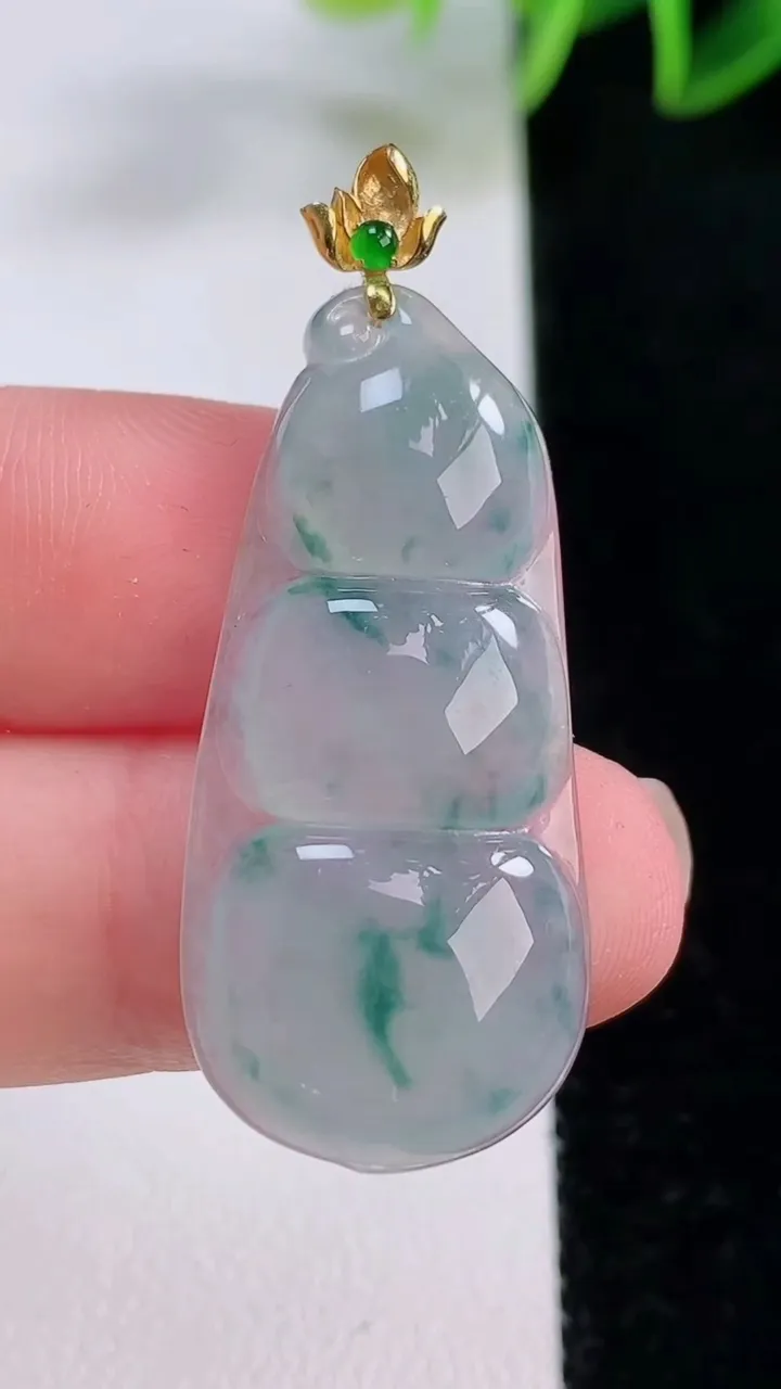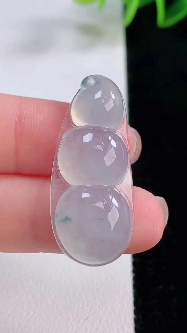 天然A货翡翠冰种飘花福豆吊坠,尺寸35.7-15.3-5.8,重量:5.51g 11月24日