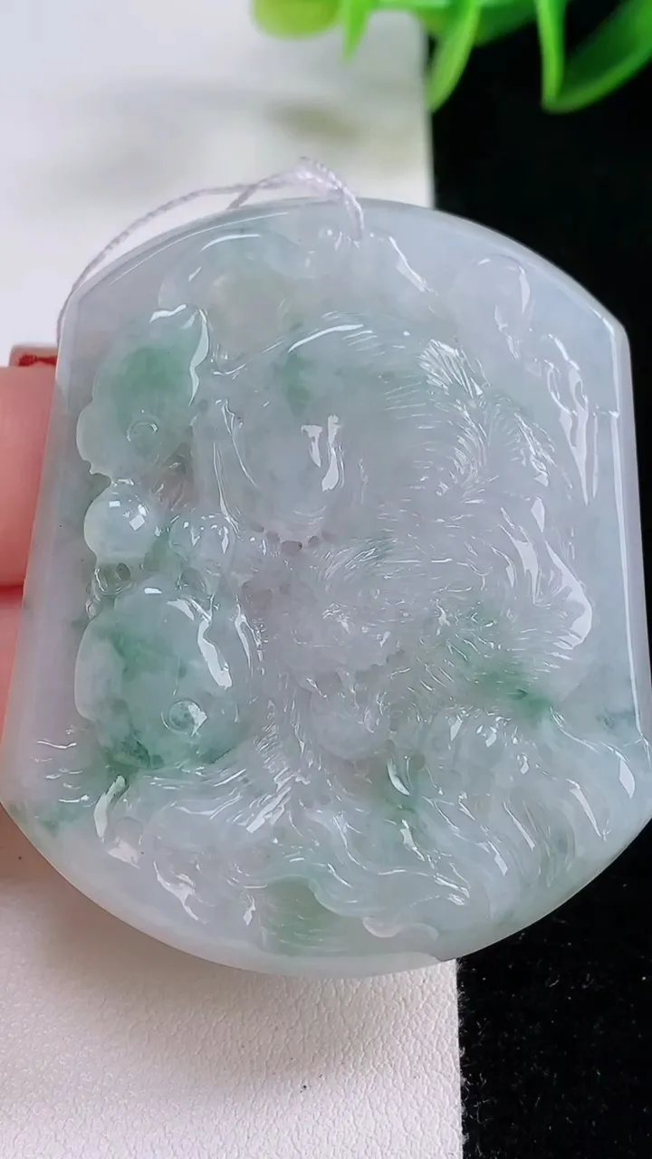 天然A货翡翠冰种飘花生肖虎吊坠,尺寸52.6-43.8-6,重量:32.56g 11月24日