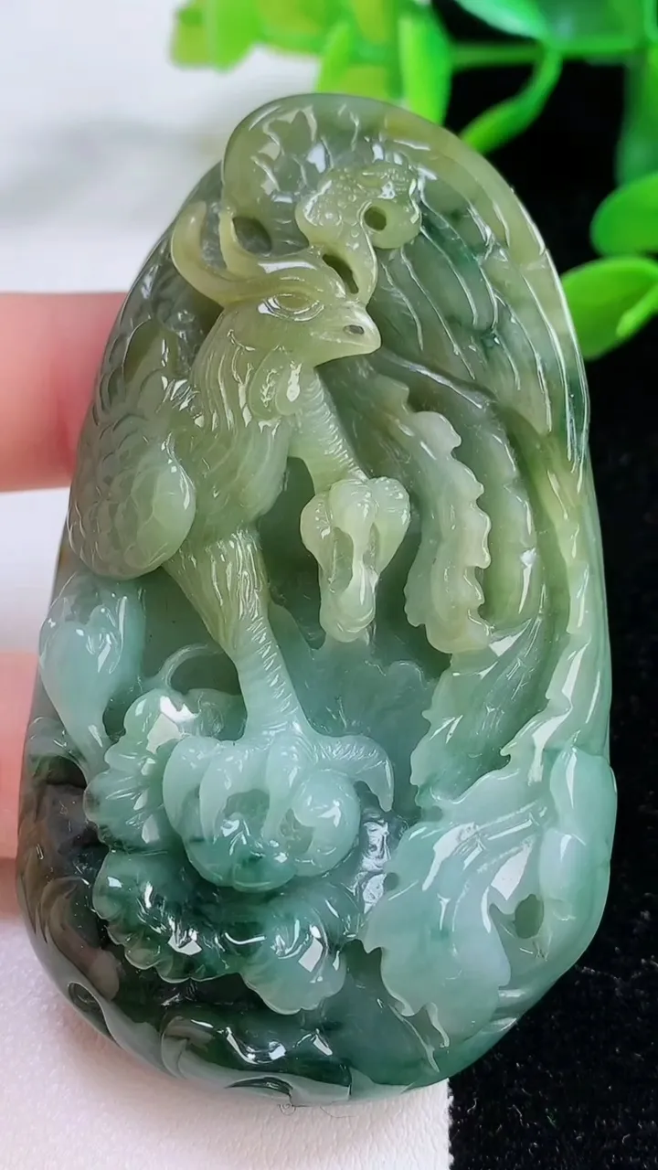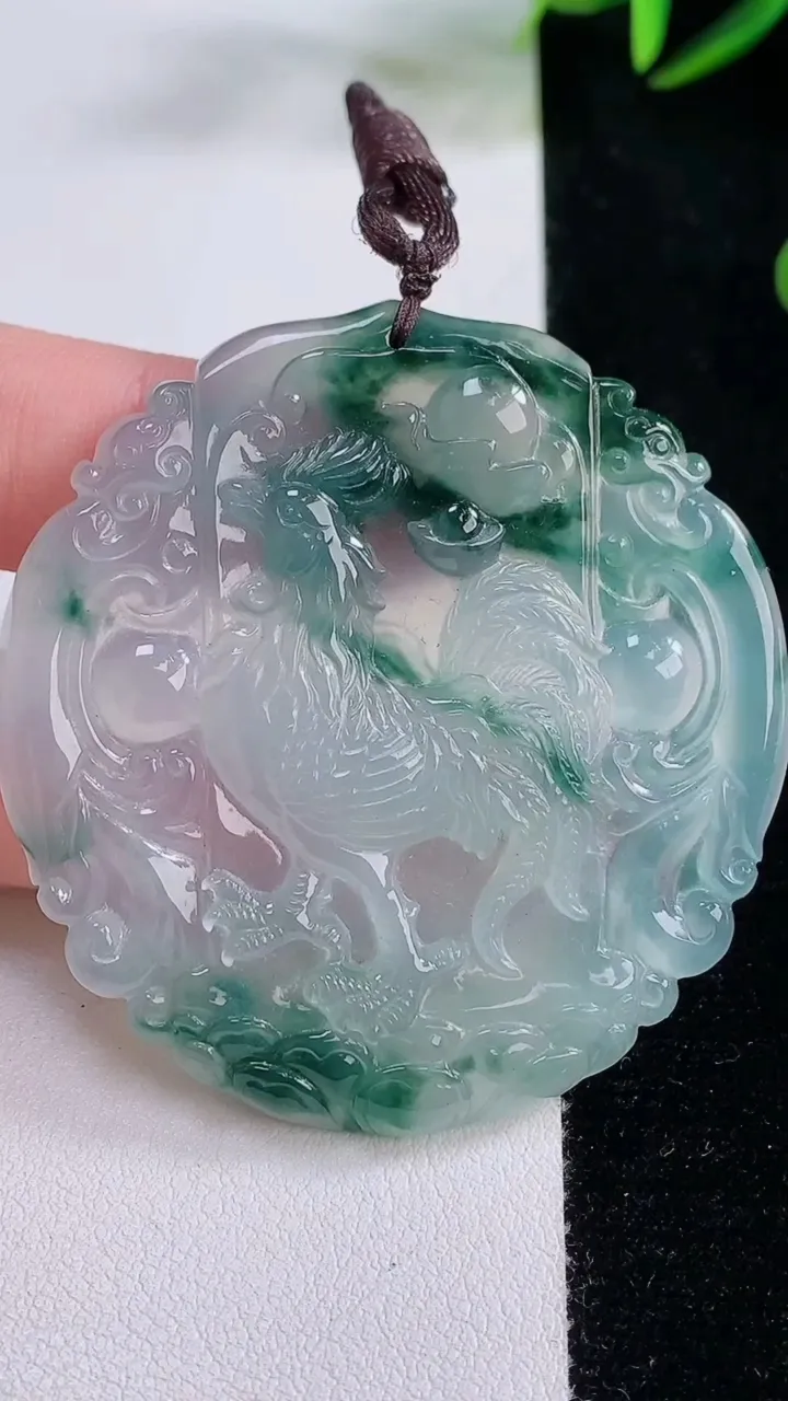 天然A货翡翠种飘花生肖鸡吊坠,尺寸53-51.3-4.3,重量:24.79g 11月24日
