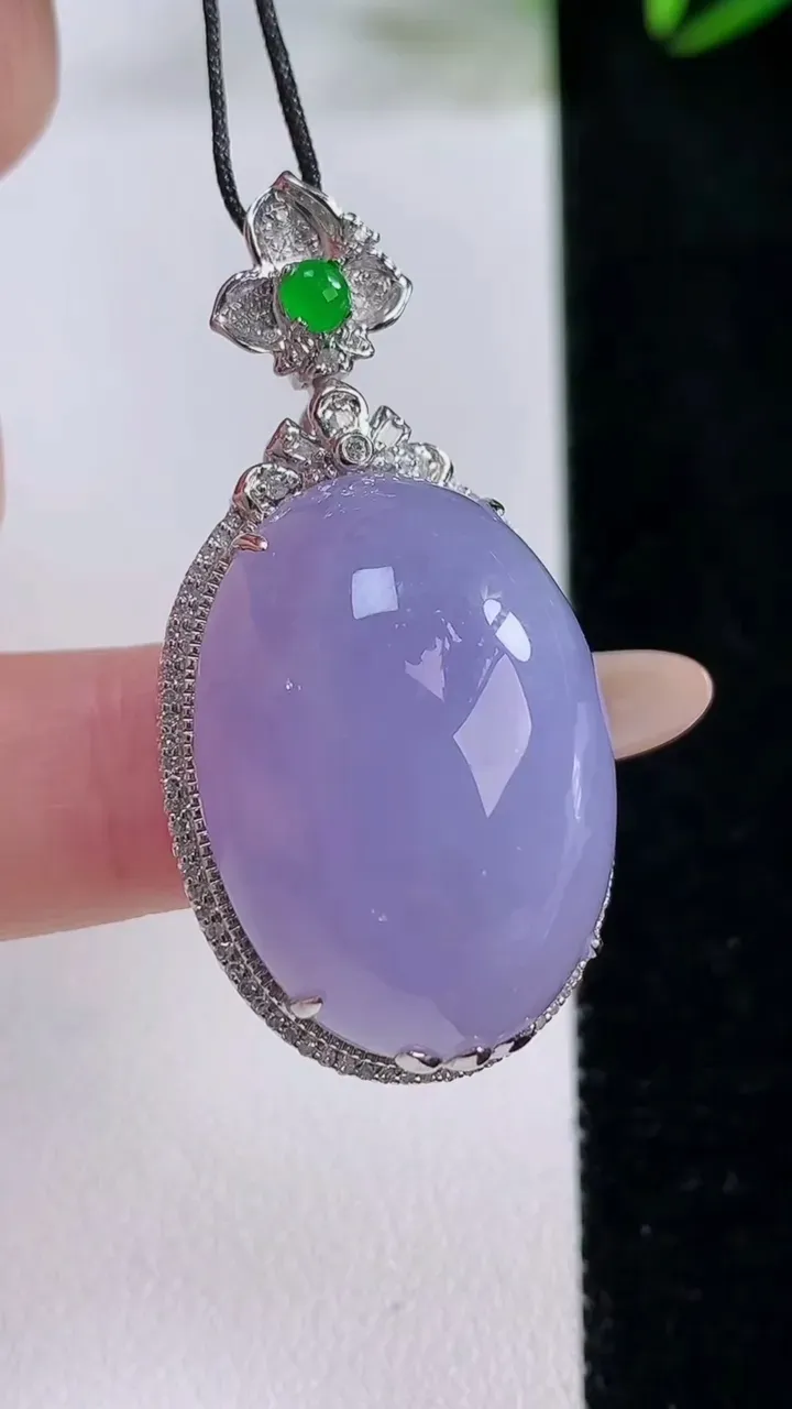 天然A货翡翠18K金紫罗兰蛋面吊坠,尺寸41.6-21.6-15.5,裸石27-19.2重量:13.