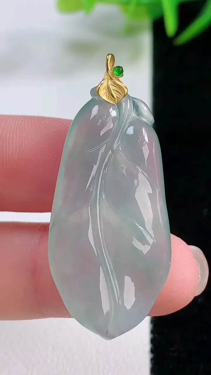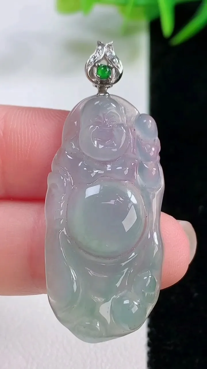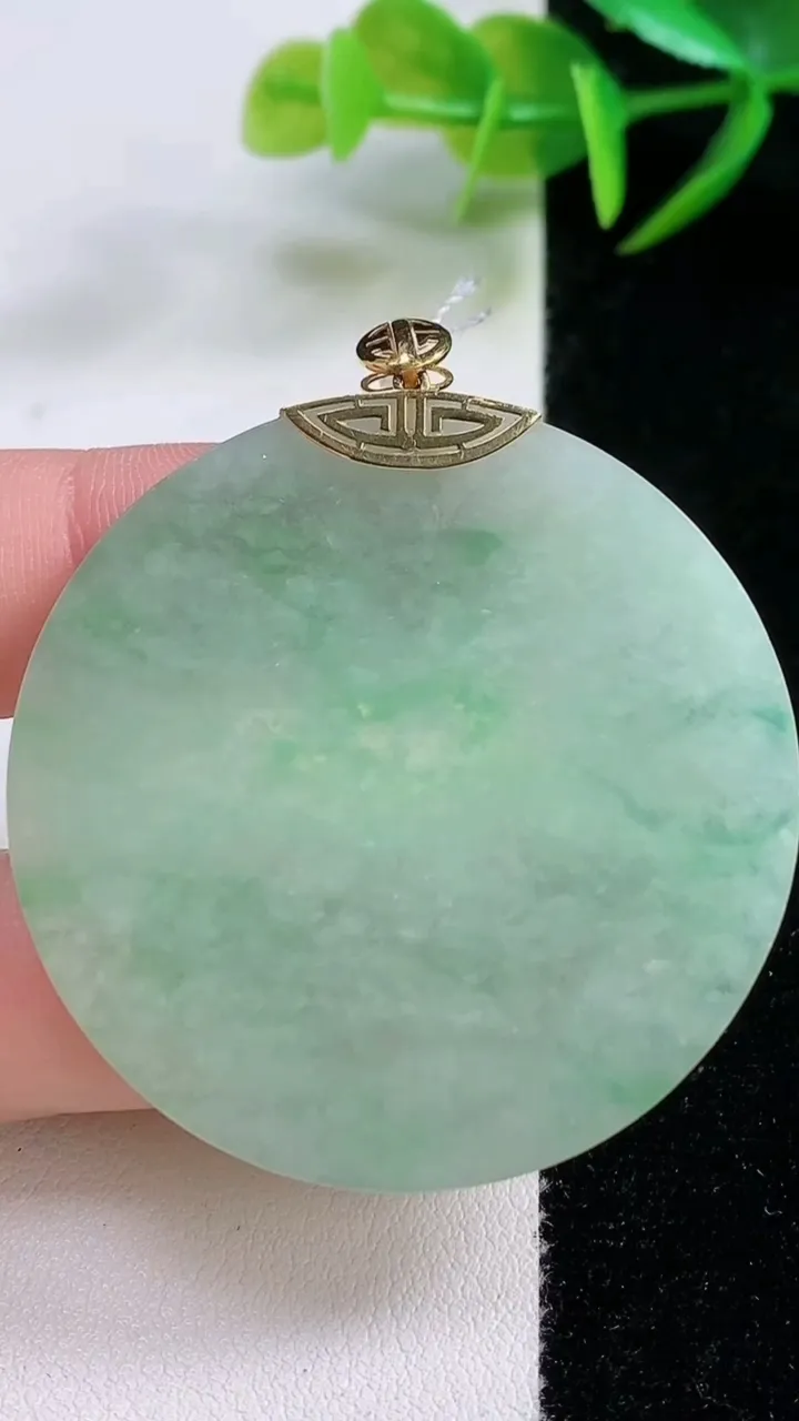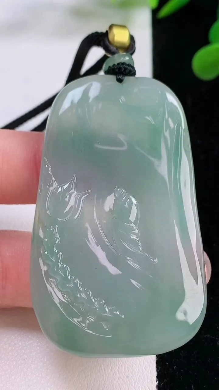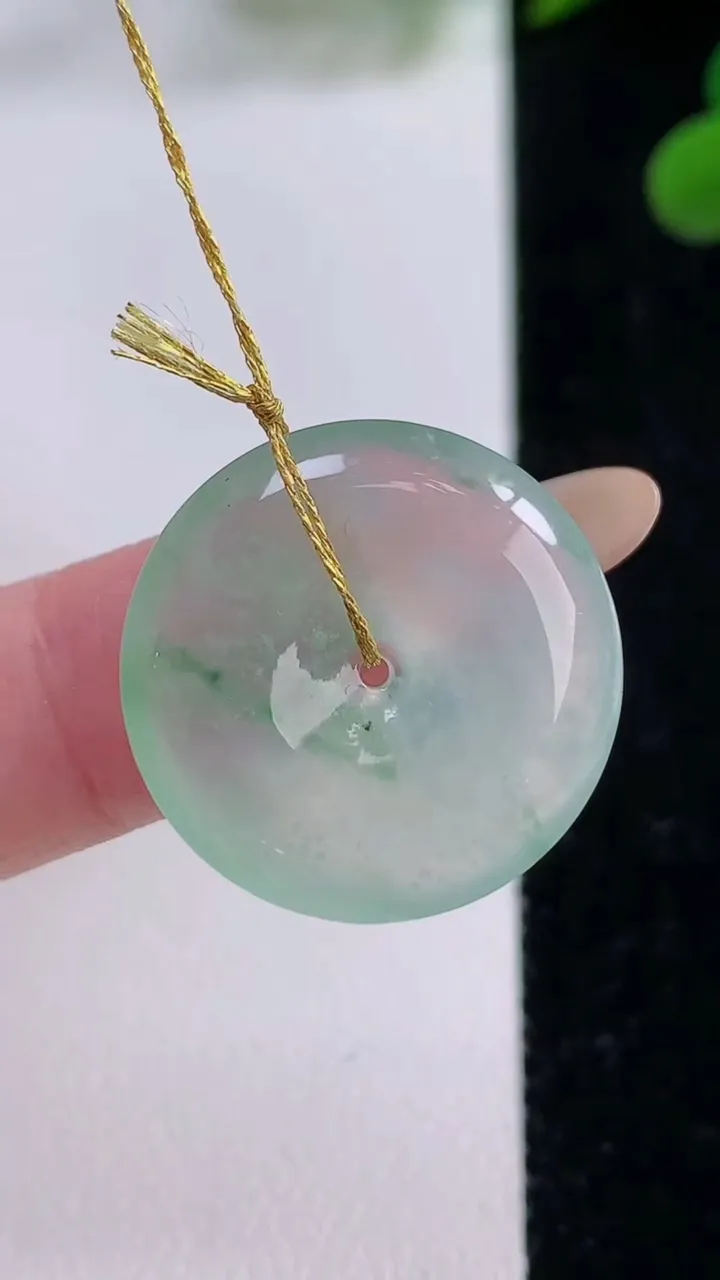 天然A货翡翠种白冰无事牌吊坠,尺寸26.5-19-2.9,重量:2.87g 11月25日