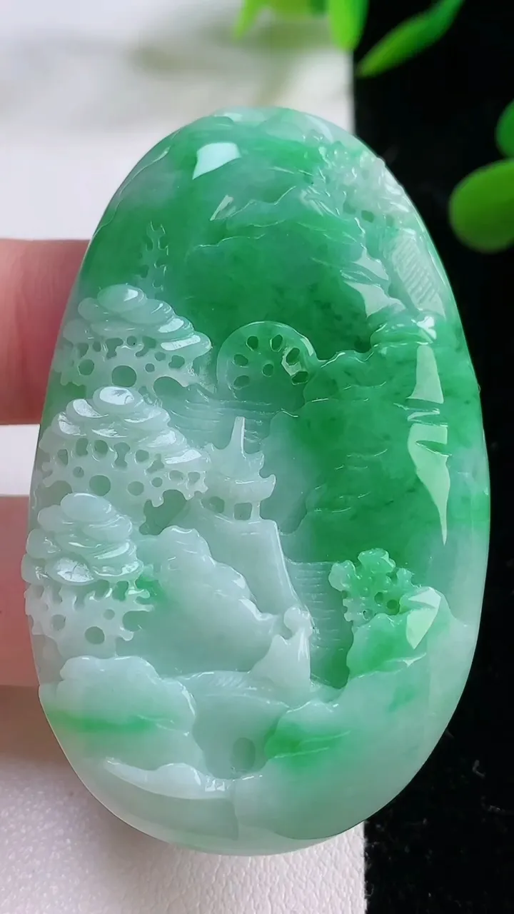 天然A货翡翠无事牌吊坠,尺寸53-41.7-25.5-6.6,重量:10.58g 11月24日