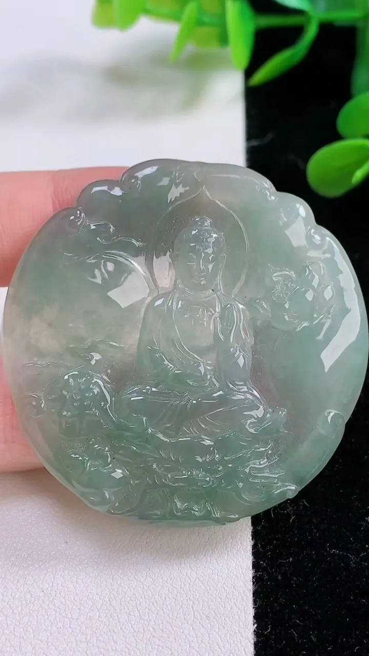 天然A货翡翠观音菩萨吊坠,尺寸64.2-39.6-5.3,重量:26.06g 11月24日