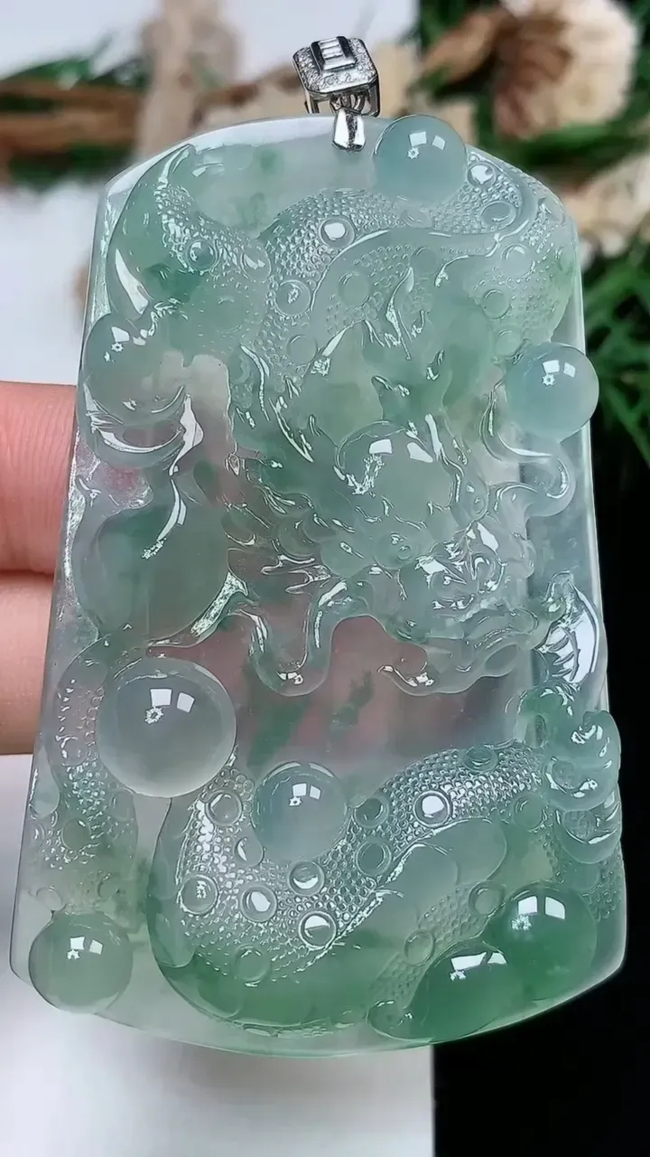 天然A货翡翠龙牌吊坠,尺寸62.5-40.6-6.5,重量:31.90g 11月28日