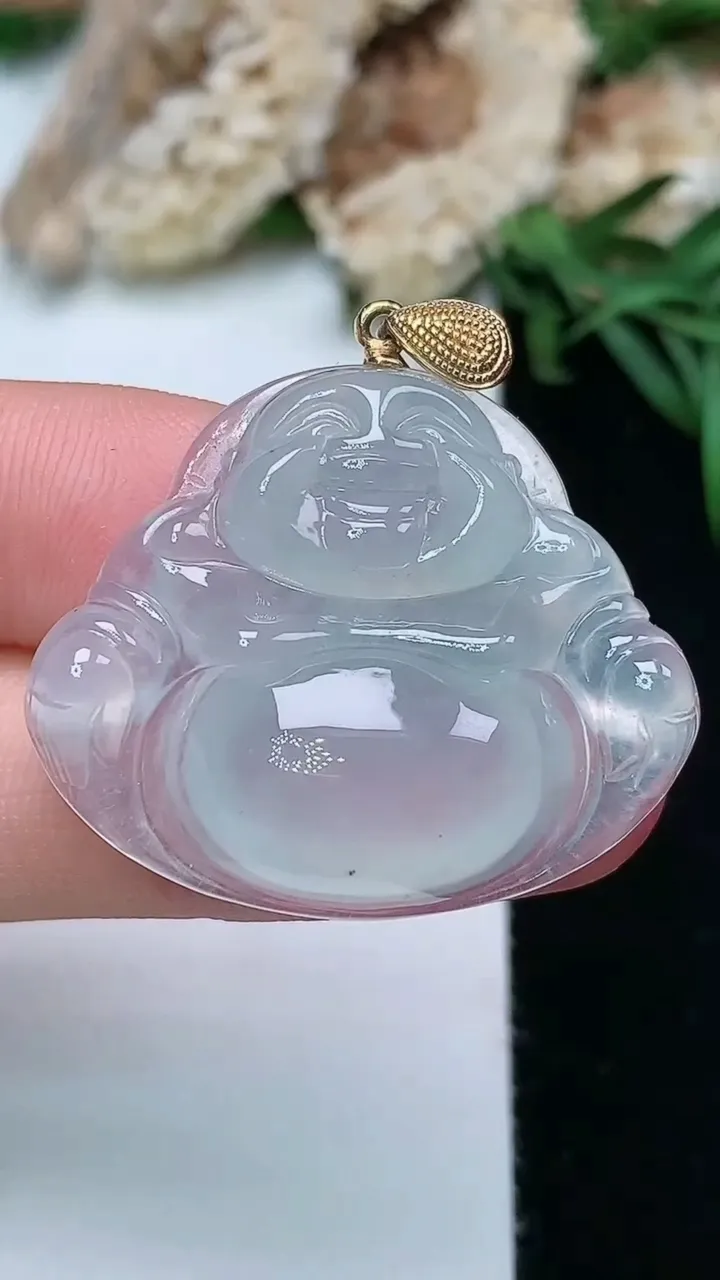 天然A货翡翠白冰佛公吊坠,尺寸26.4-31.6-7,重量:8.25g 11月28日
