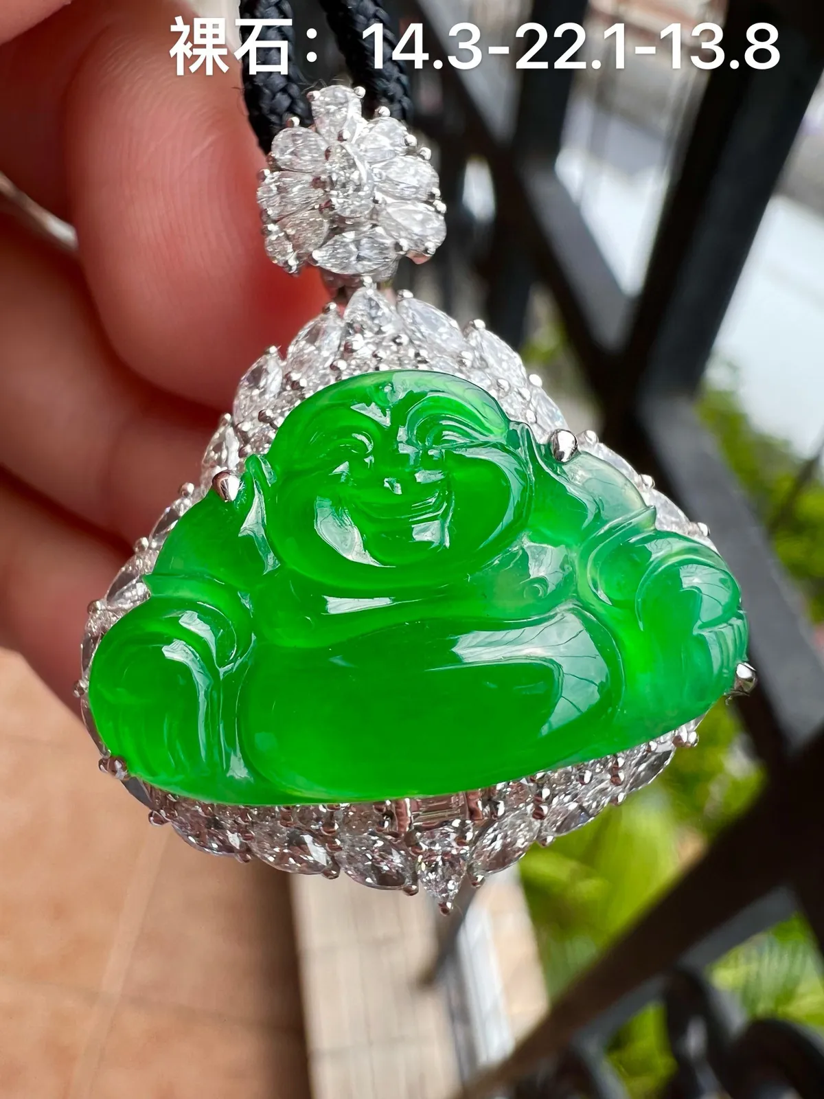 天然A货翡翠佛公吊坠,尺寸24.8-21-6.2,裸石14.3-19.2,重量:3.26g 11月2