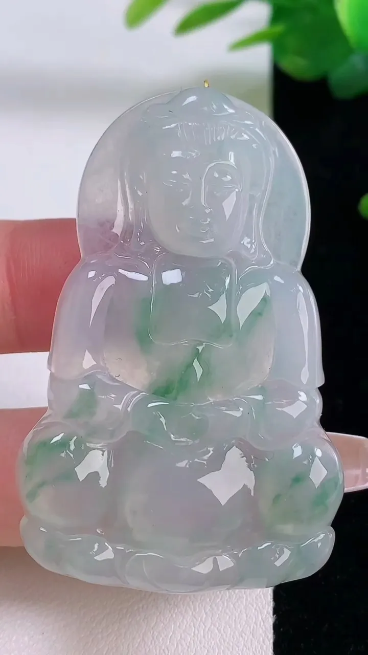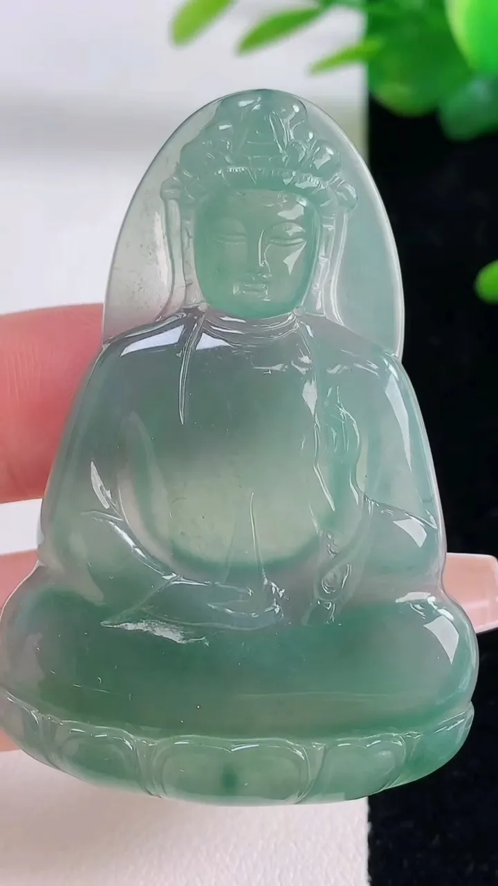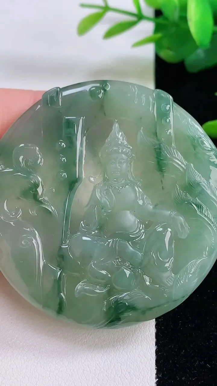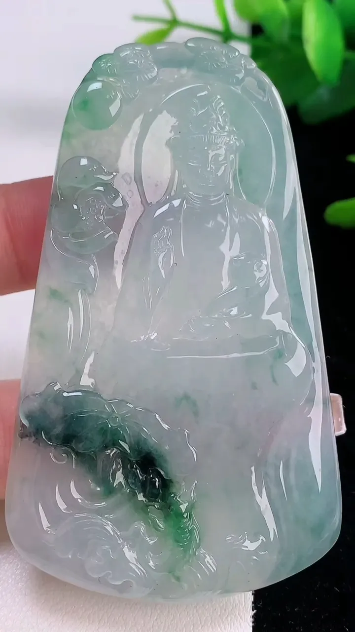天然A货翡翠冰种飘花大势至菩萨吊坠,尺寸74.7-44.7-5.2,重量:38.64g 12月6日