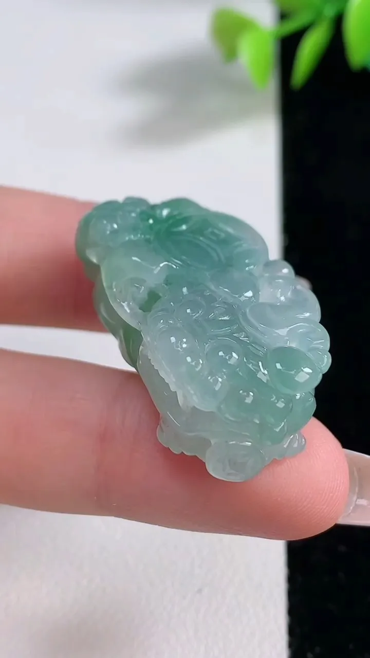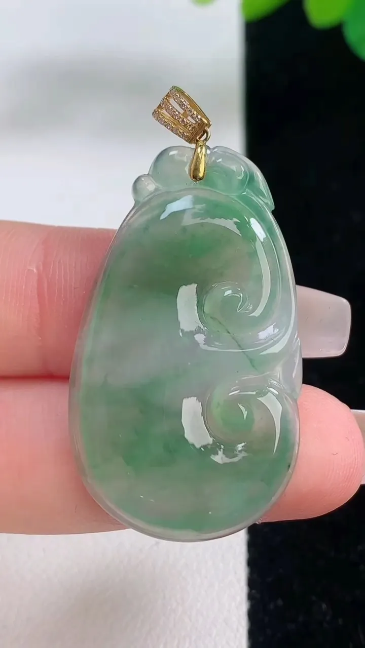 天然A货翡翠如意吊坠,尺寸36.8-21.4-3.2,重量:5.46g 12月11日
