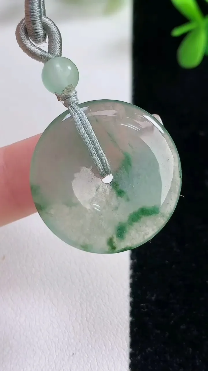天然A货翡翠冰种飘花平安扣吊坠,尺寸25.8-3.4,重:4.66g 12月21日