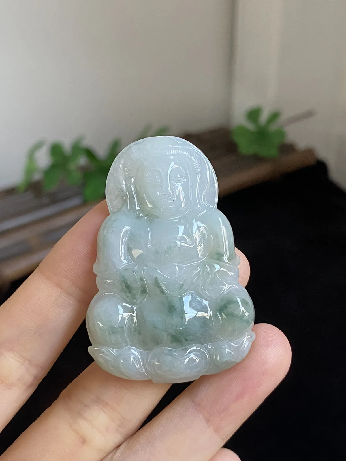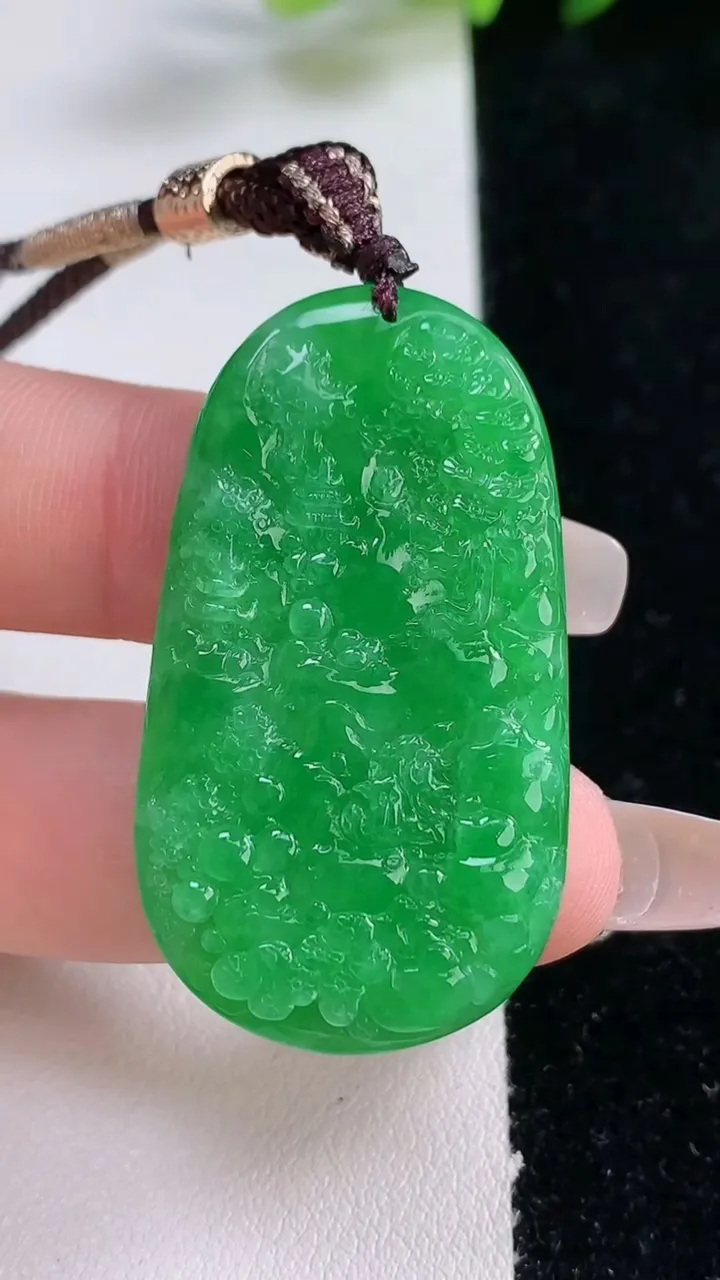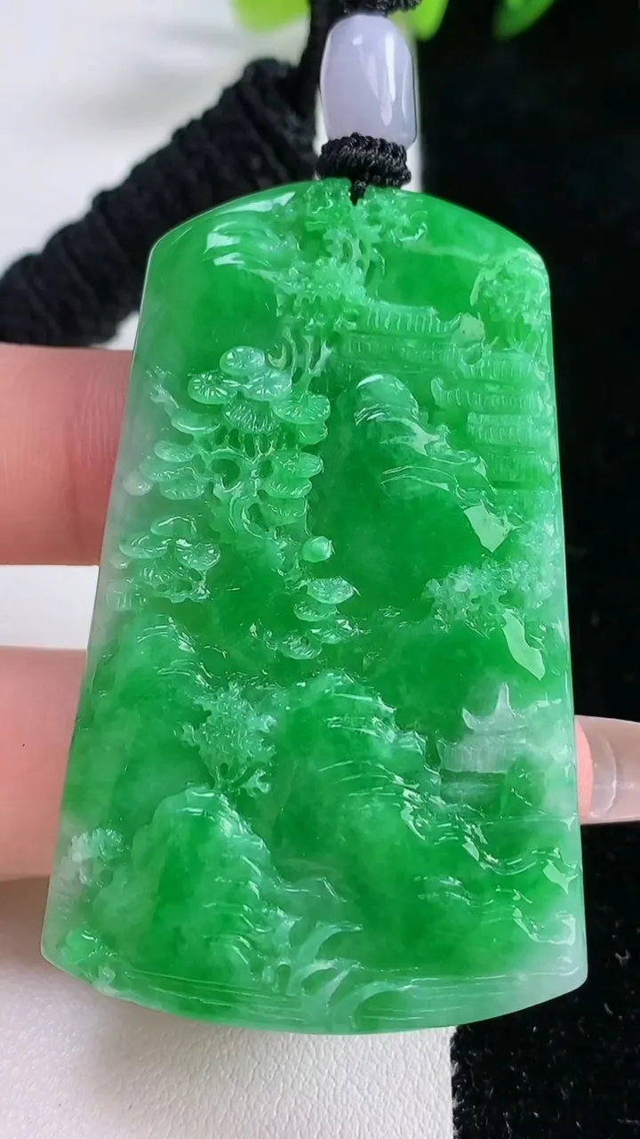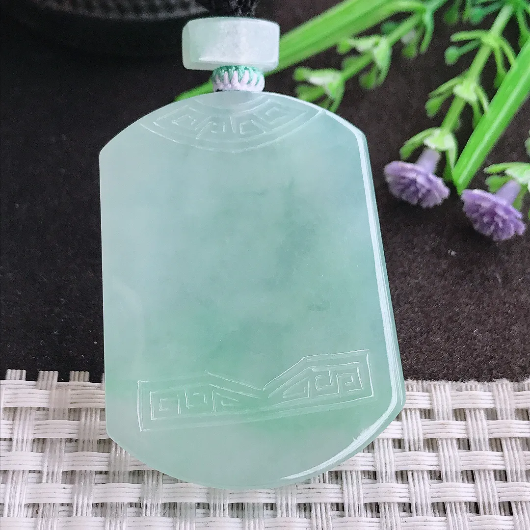 天然A货翡翠48.3/36.7/5.4老坑冰润水灵冰晴仿古无事牌吊坠翡翠挂件