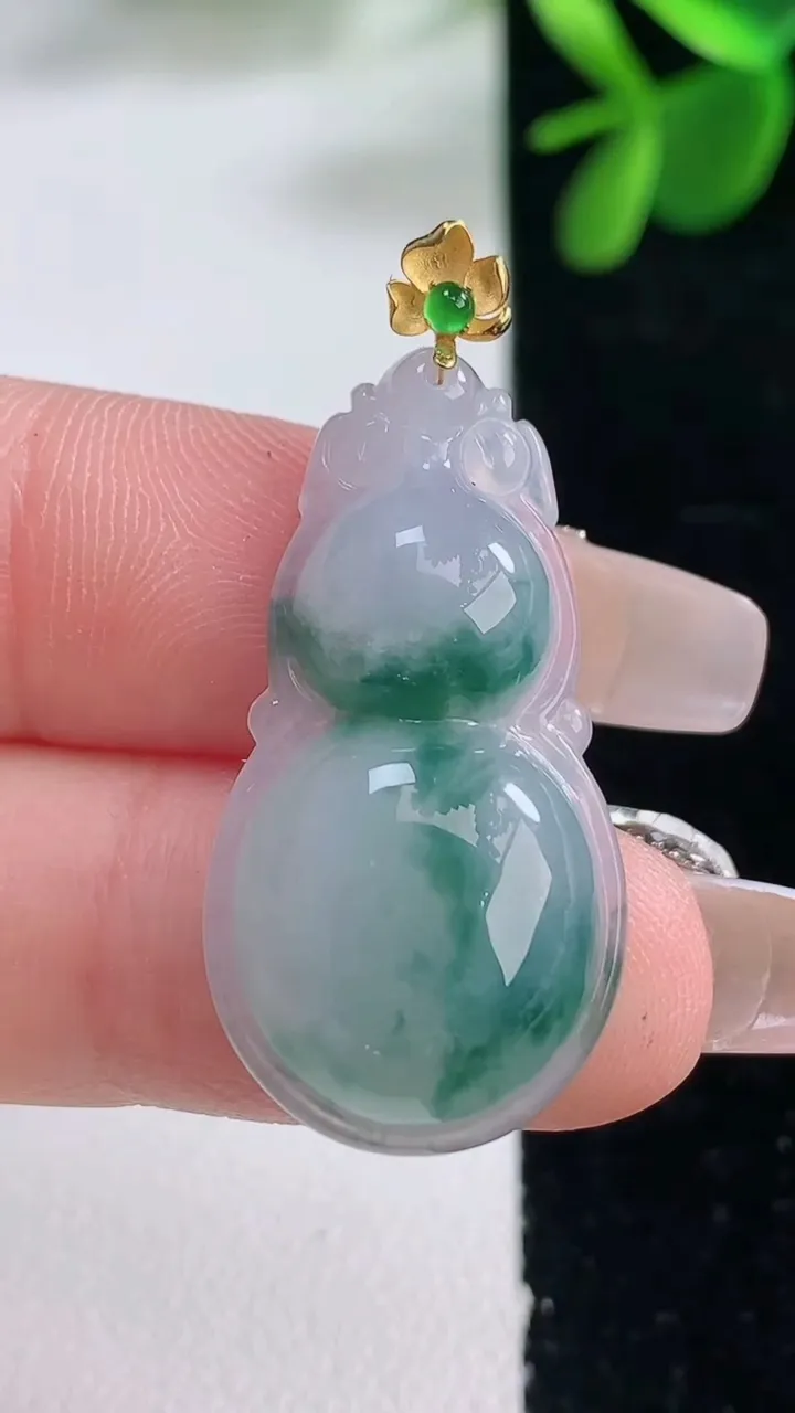 天然A货翡翠18K金飘花葫芦吊坠,尺寸31-16.5-5.9,重量:4.46g 12月25日