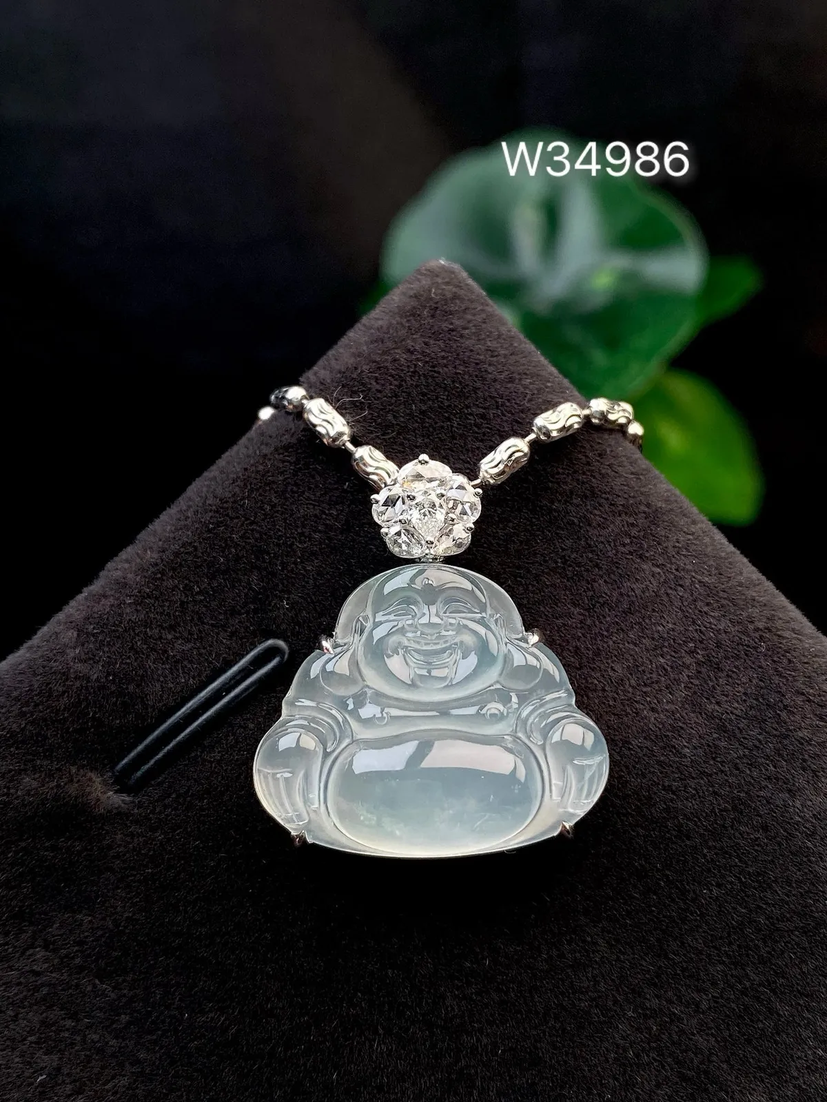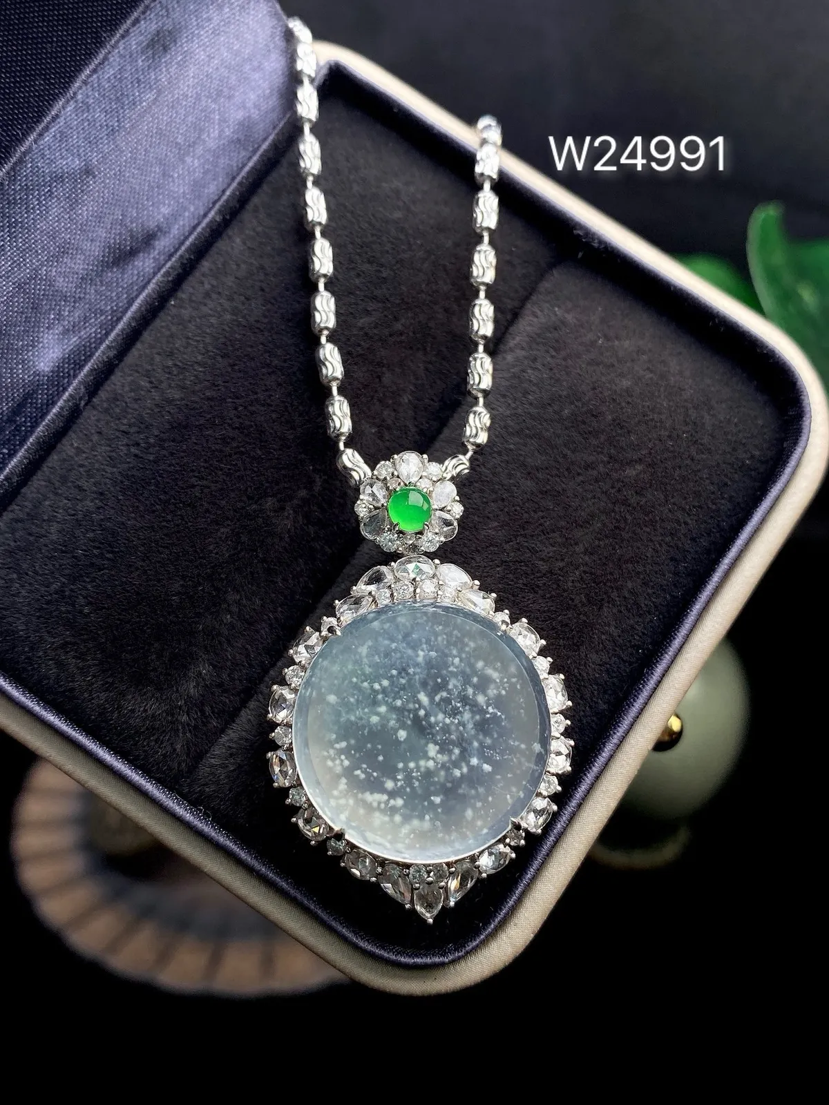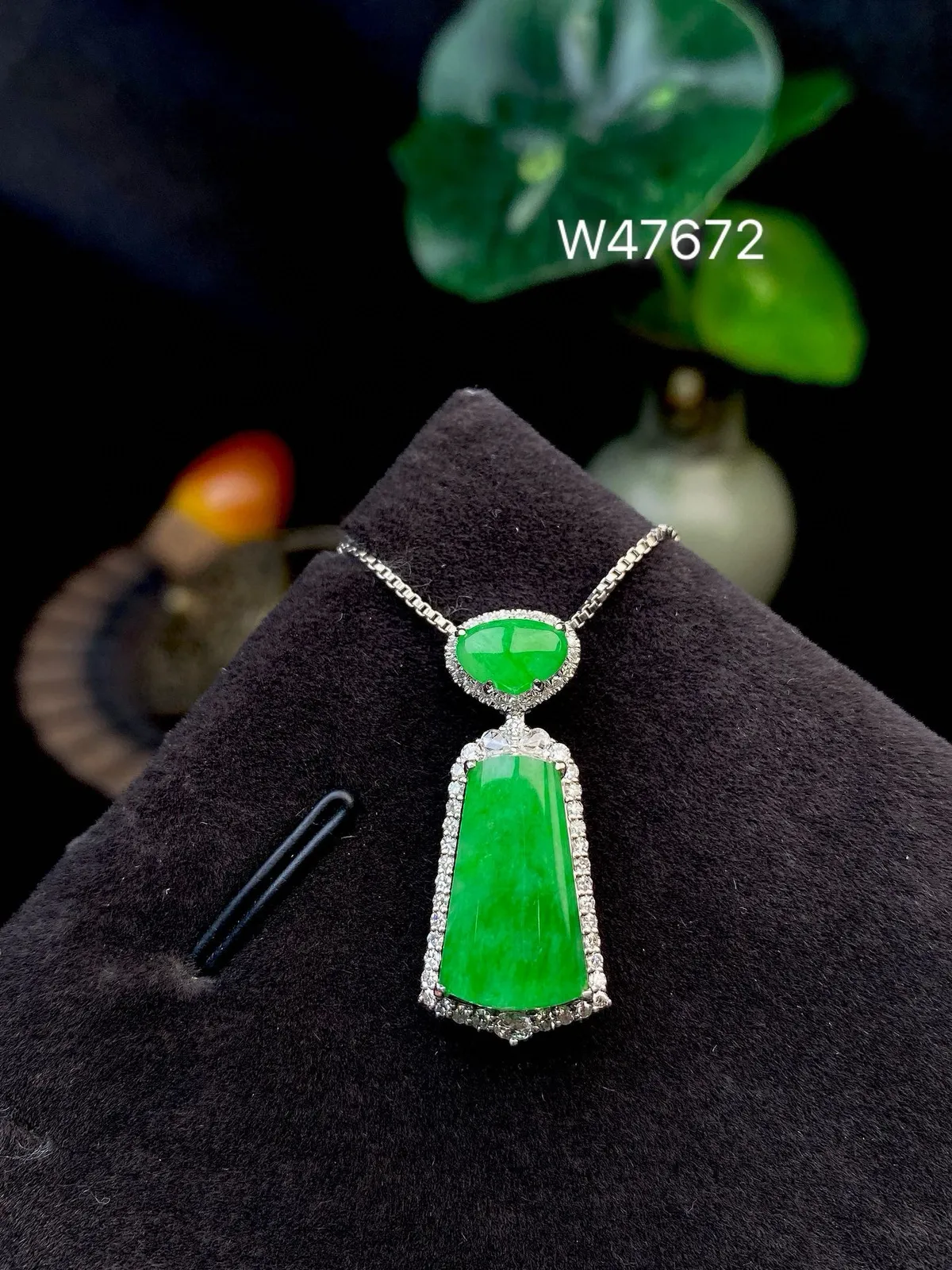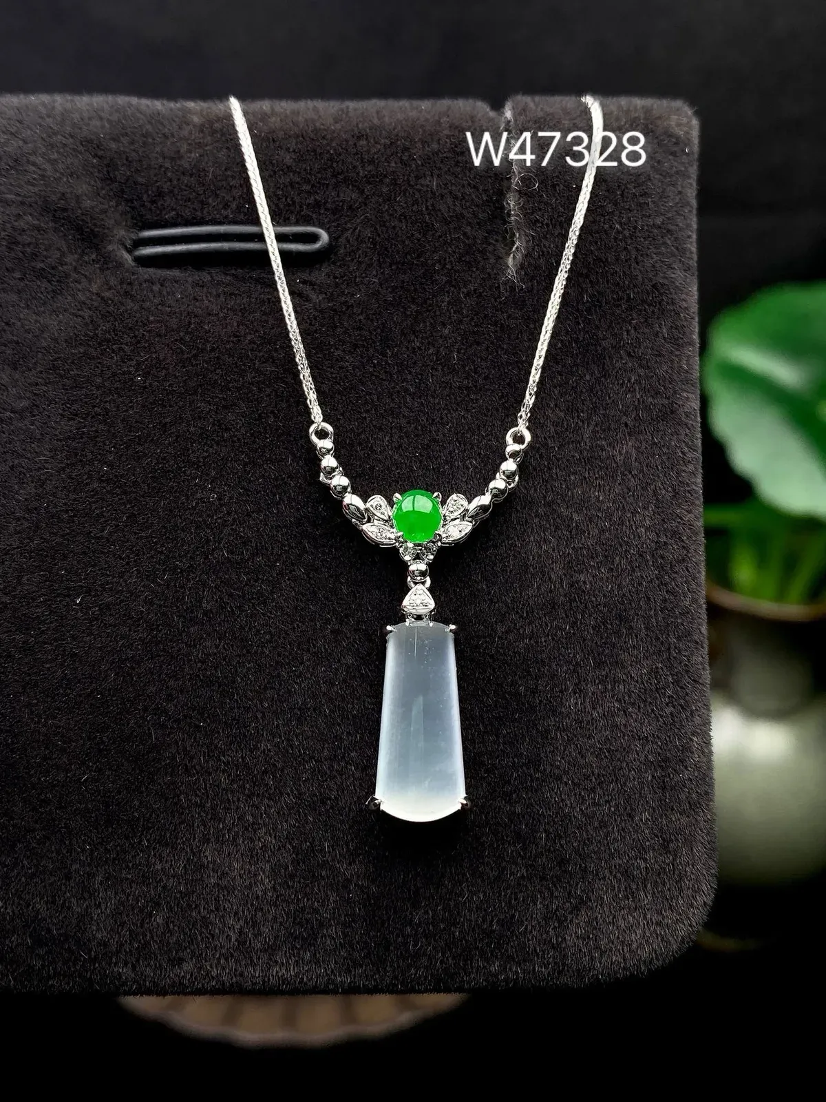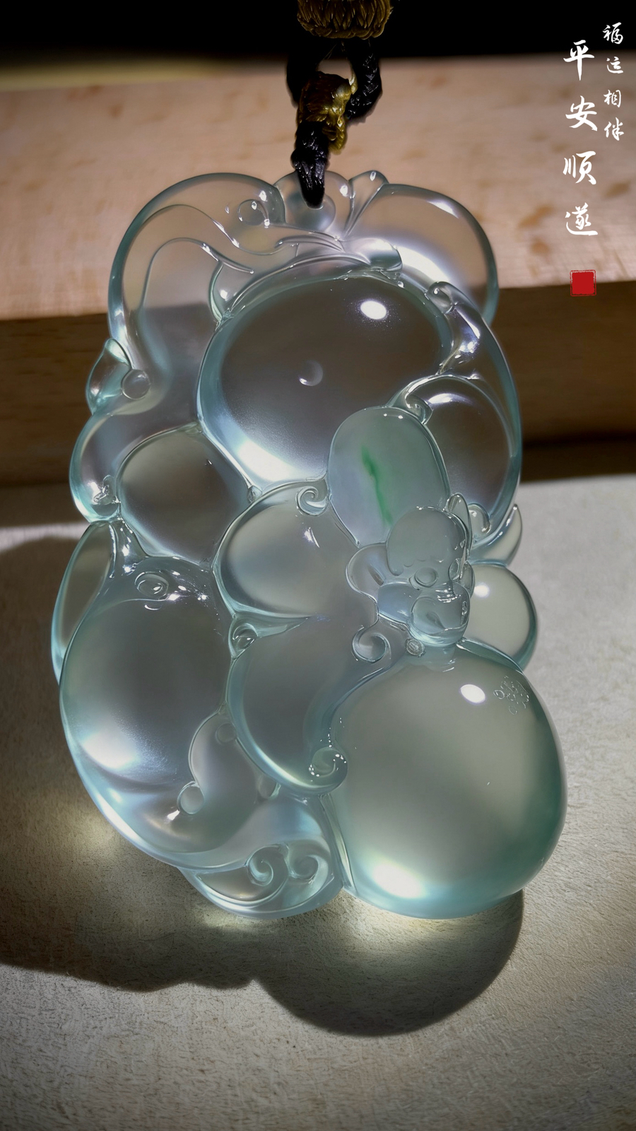 天然A货翡翠种白冰金枝玉叶 叶子吊坠,尺寸42.8-28-5,重量:13.44g 12月11日