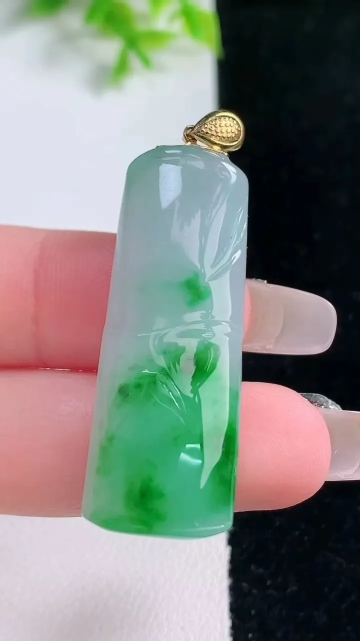 天然A货翡翠节节高升 竹节吊坠,尺寸38.6-14.2-7.5,重量:10.22g 1月16日