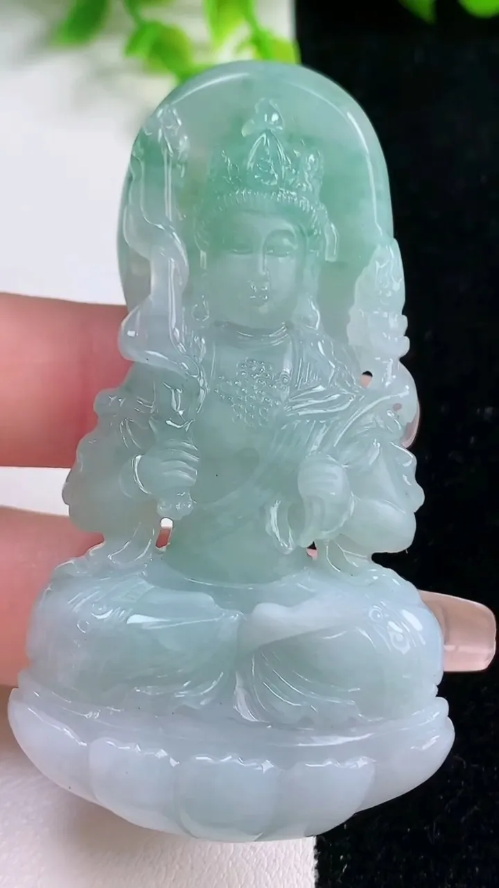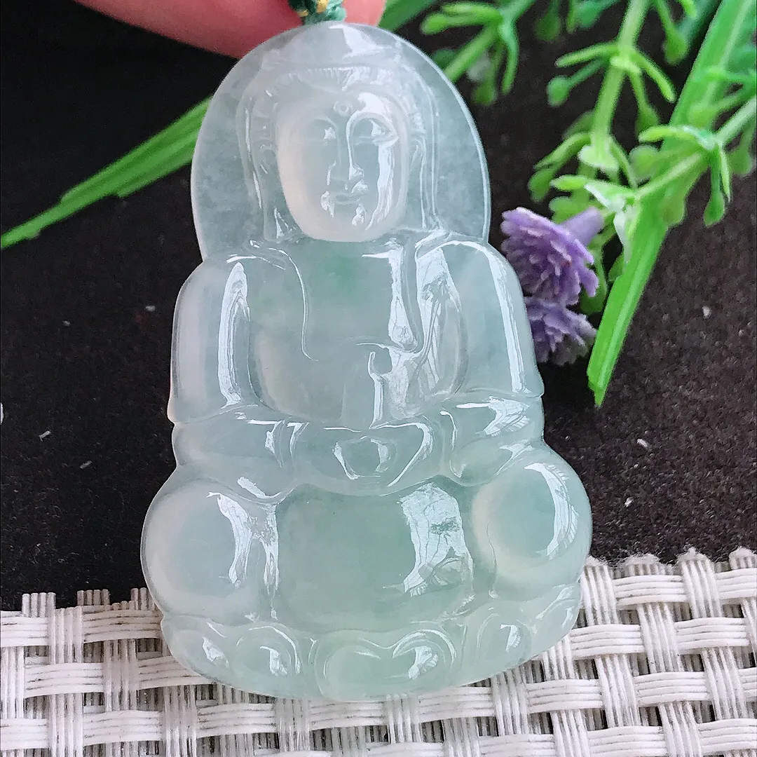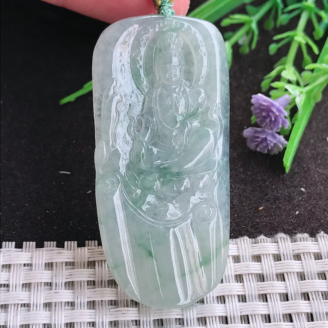 天然A货翡翠冰种飘花虚空藏菩萨吊坠,尺寸68-37-11.7,重量:44.78g 1月16日