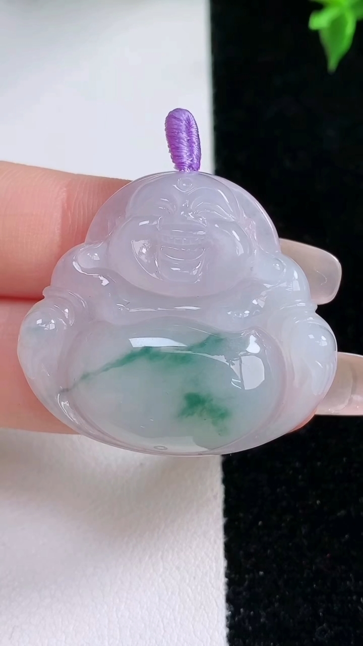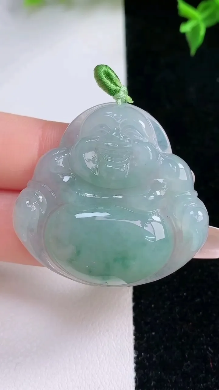 天然A货翡翠飘花佛公吊坠,尺寸31.6-34.8-6.4,重量:10.45g 1月22日