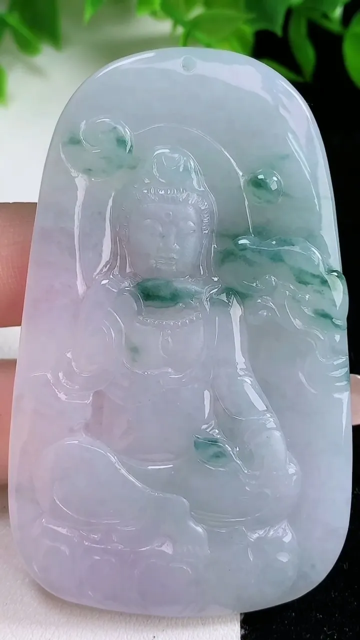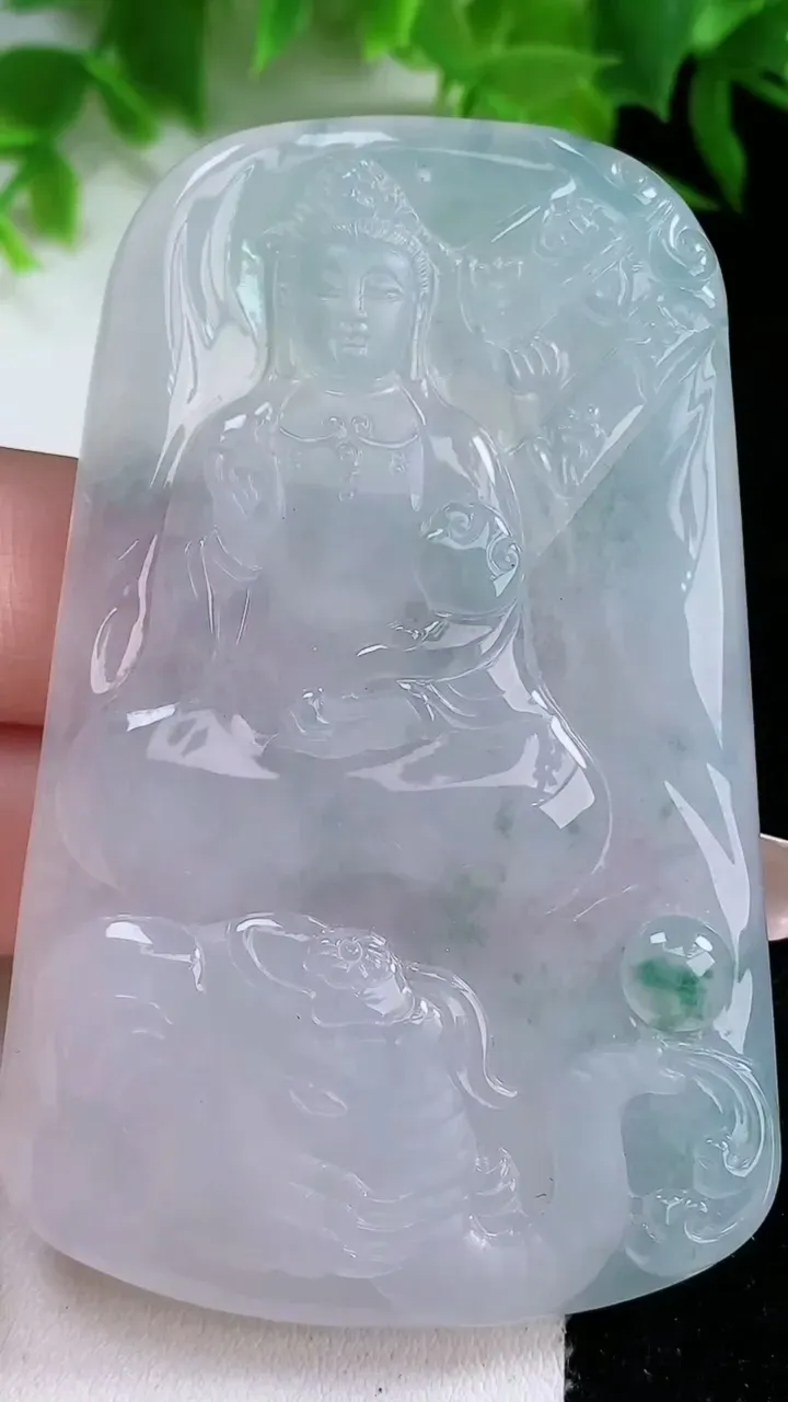 天然A货翡翠种飘花普贤菩萨吊坠,尺寸70-44-5.4,重量:38.70g 1月25日