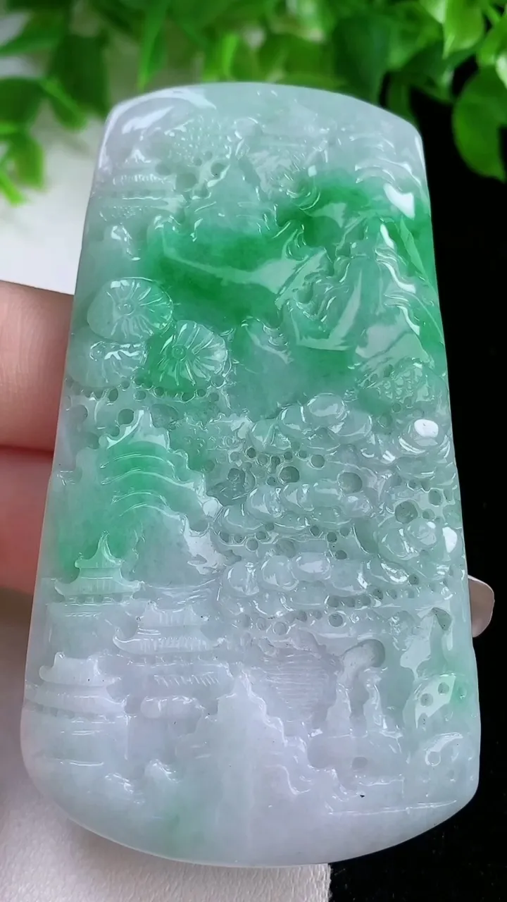 天然A货翡翠飘花不动明王吊坠,尺寸61.2-38.8-4.8,重量:29.46g 1月25日