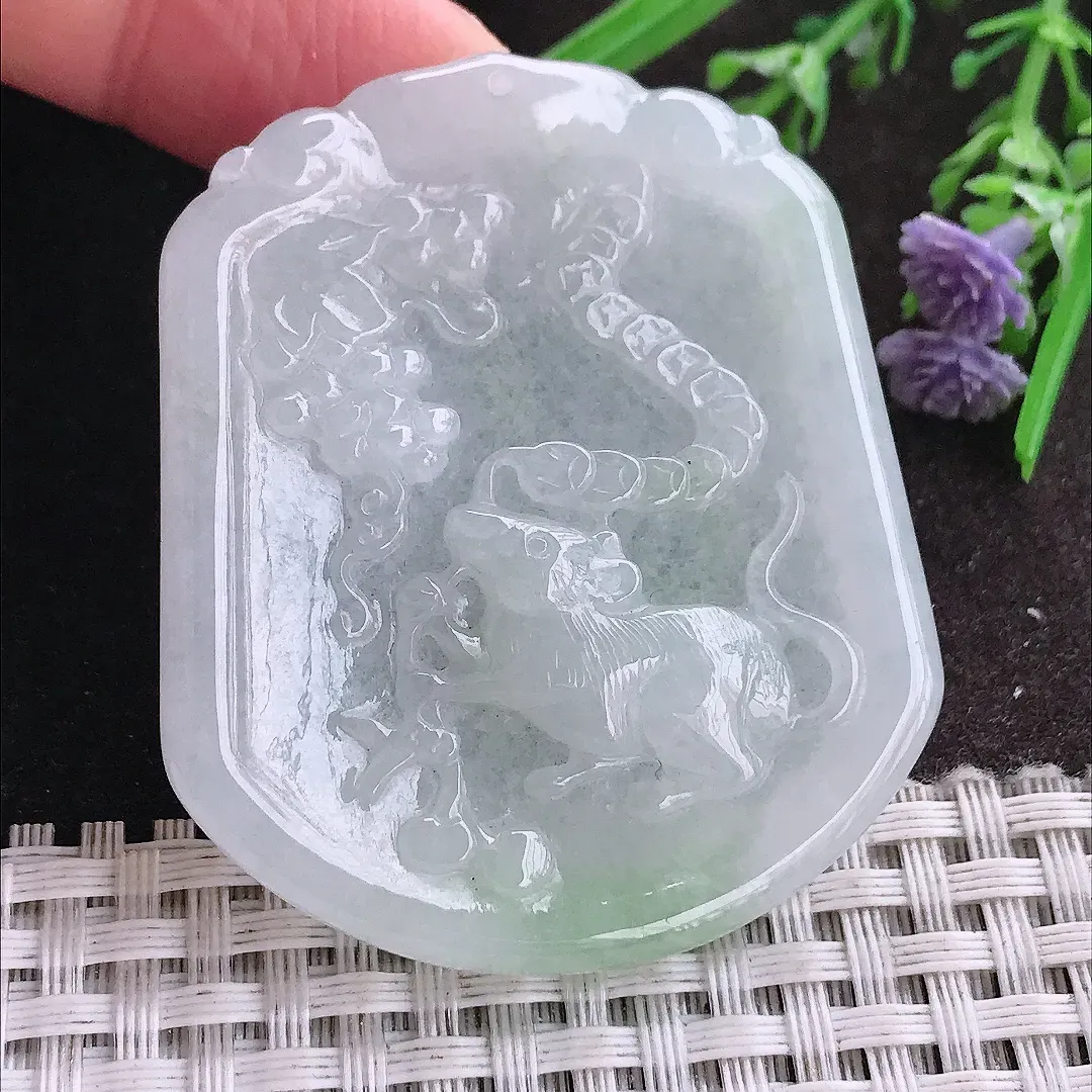 实拍A货翡翠53/45/5.6老坑秀气冰润招财鼠生肖鼠牌吊坠翡翠挂件