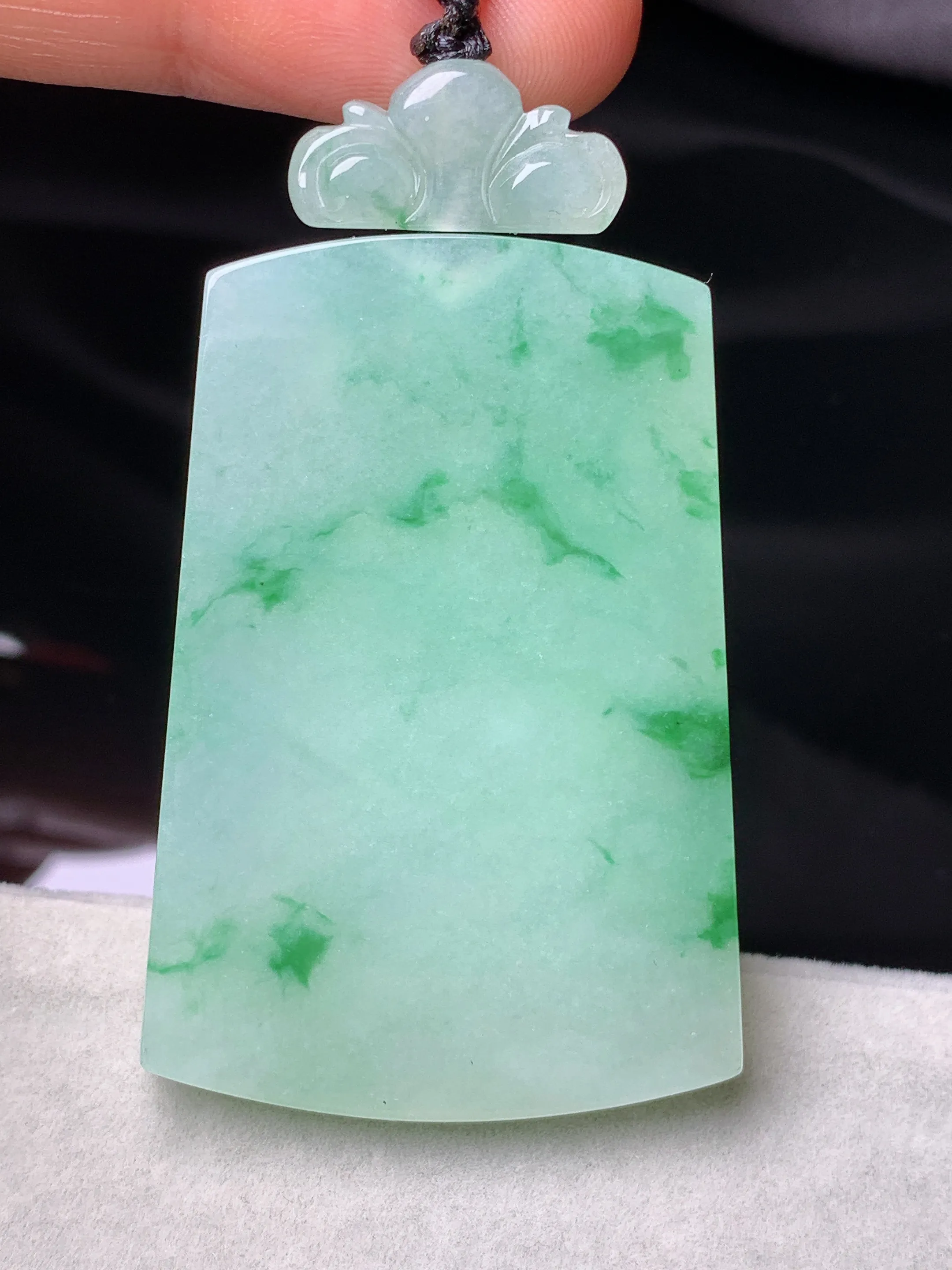 天然A货翡翠无事牌吊坠,尺寸42.6-33.4-11.5,裸石28-2.4,重量:12.52g 1月