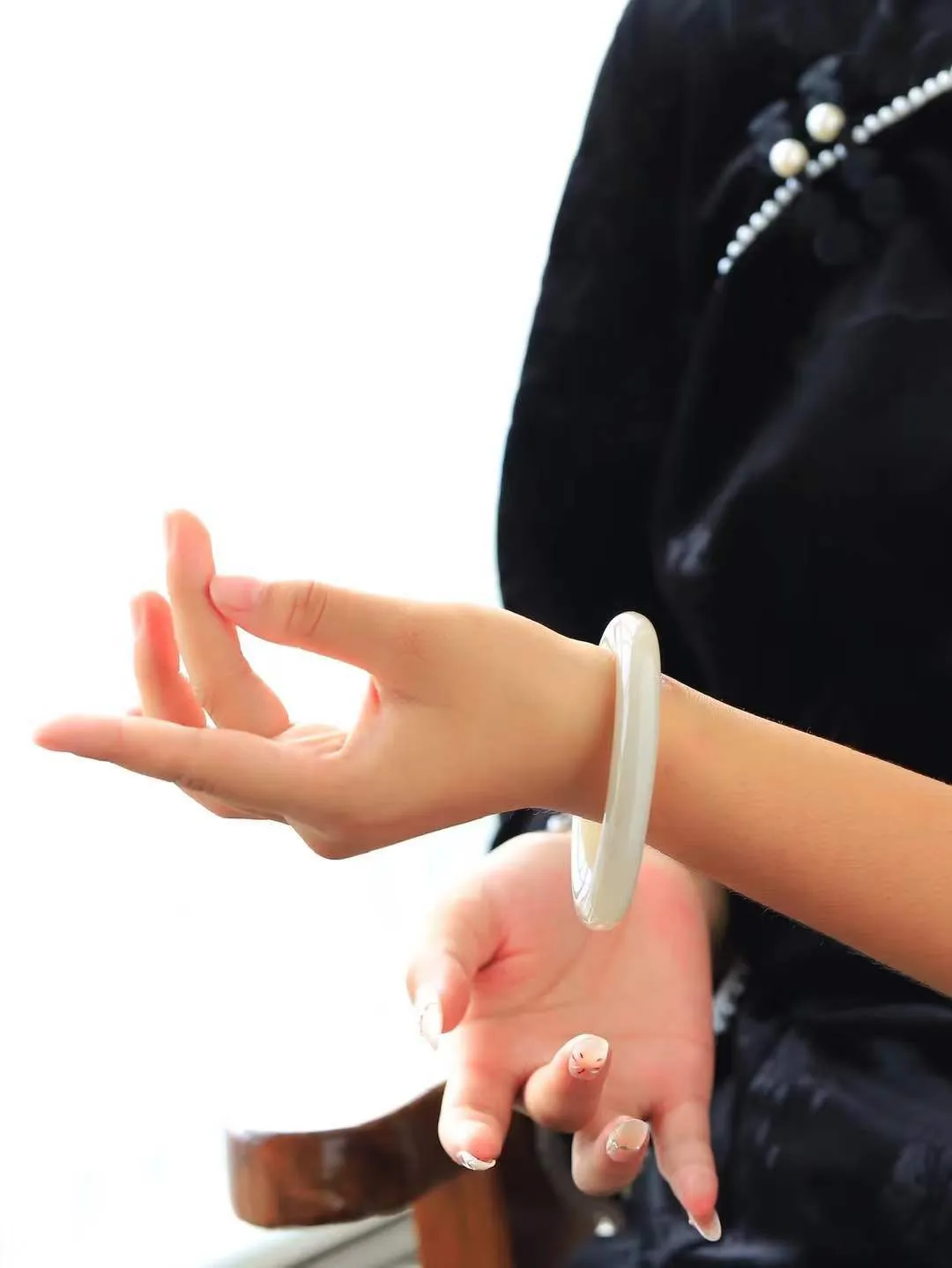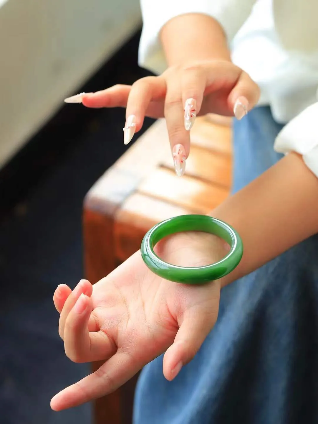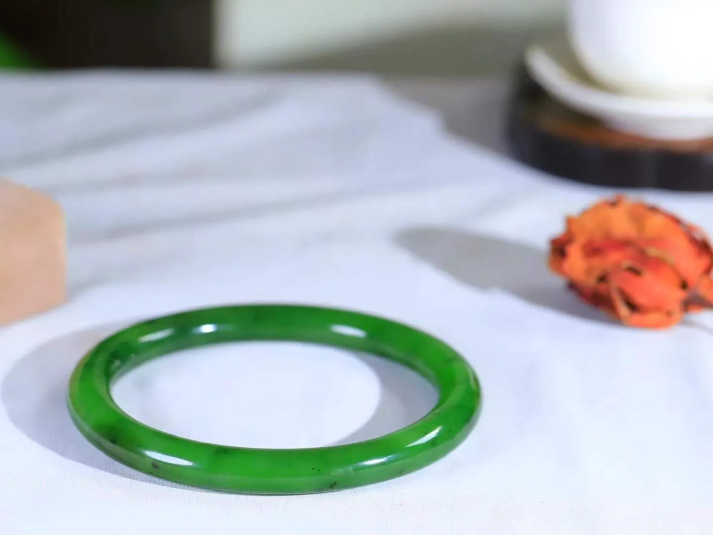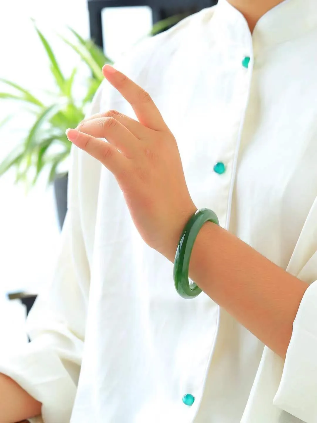 (一见钟情.臂镯) 精品和田玉碧玉臂镯,玉质温和莹润,精光内蕴,手感舒适。整器简约,打磨光洁,让