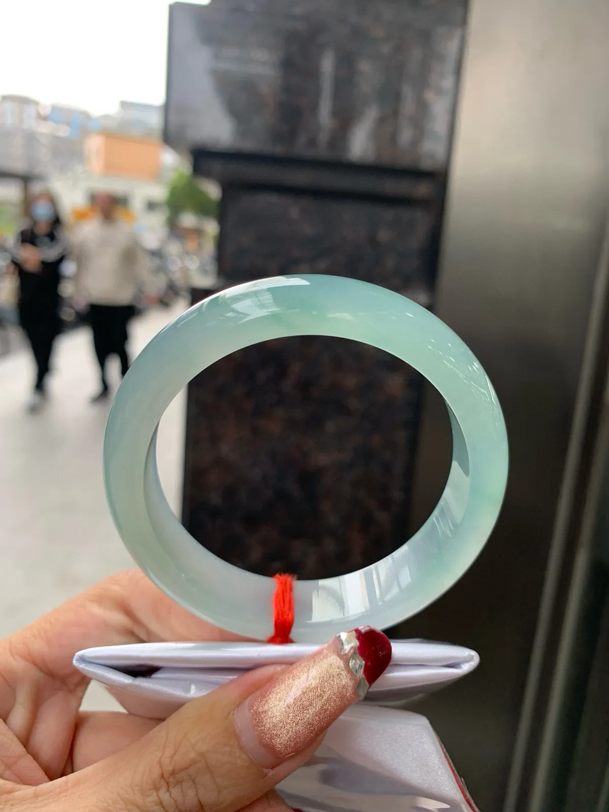 实拍翡翠A货56/12.3/8.4老坑冰润飘绿手镯翡翠玉镯女款百搭