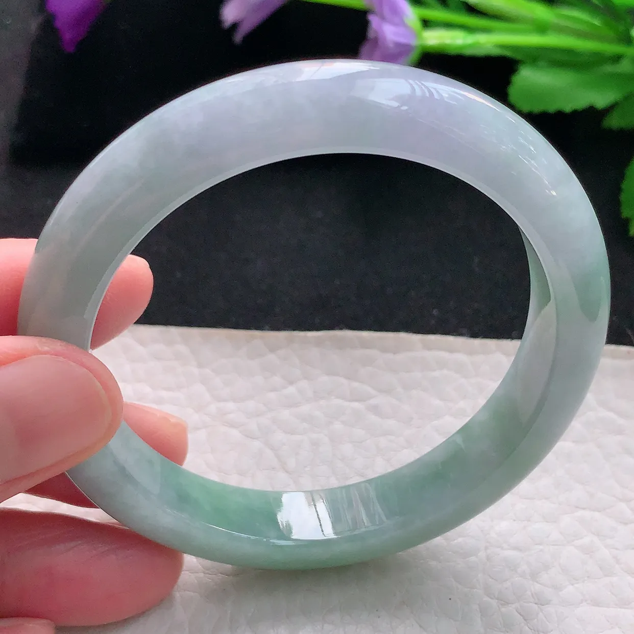 js自然光56*11.2*8平安镯 天然缅甸翡翠手镯淡紫正圈宽边镯子玉手环