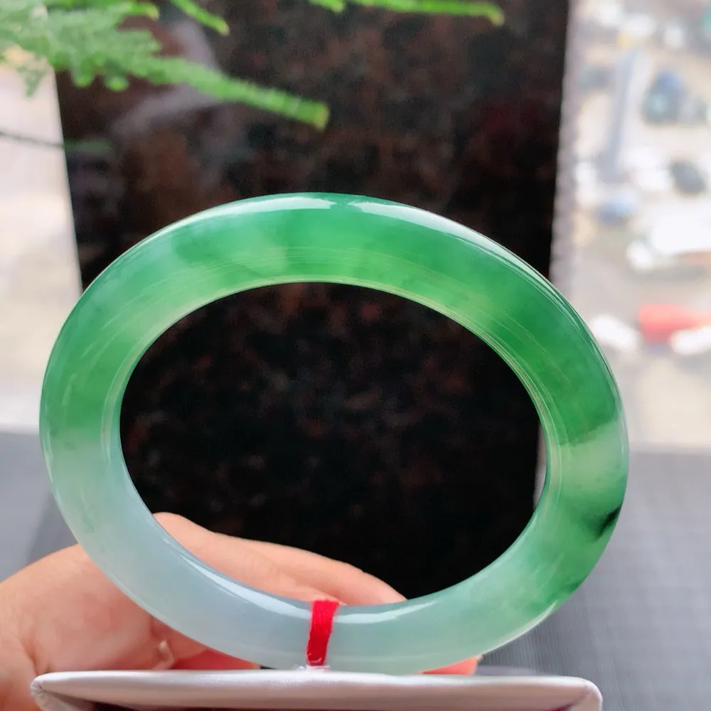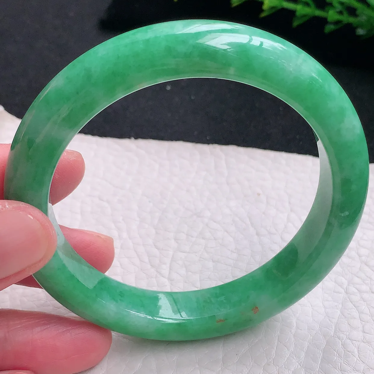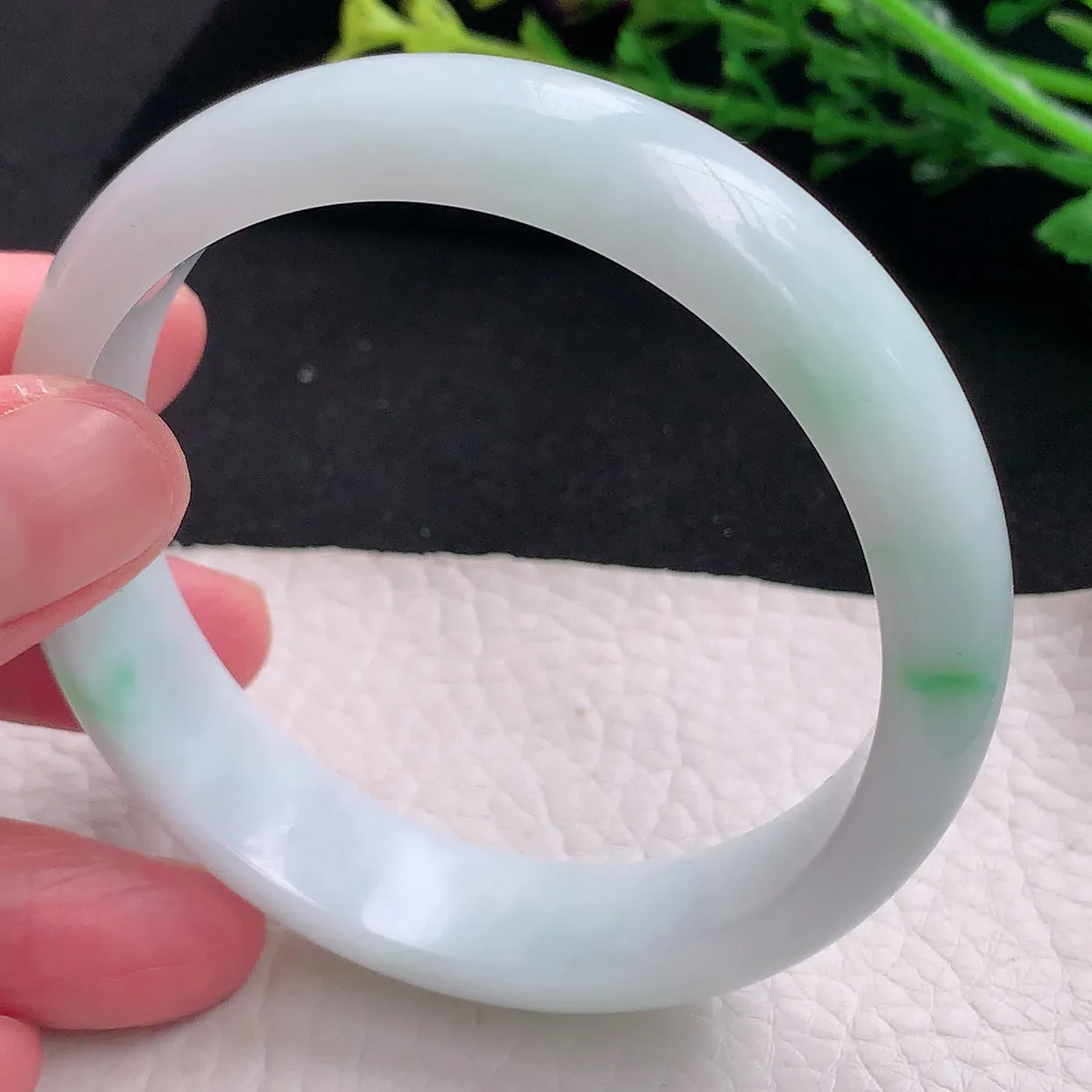 jm自然光57*13.7*7平安镯 天然缅甸翡翠a货飘绿宽边珠宝玉手镯