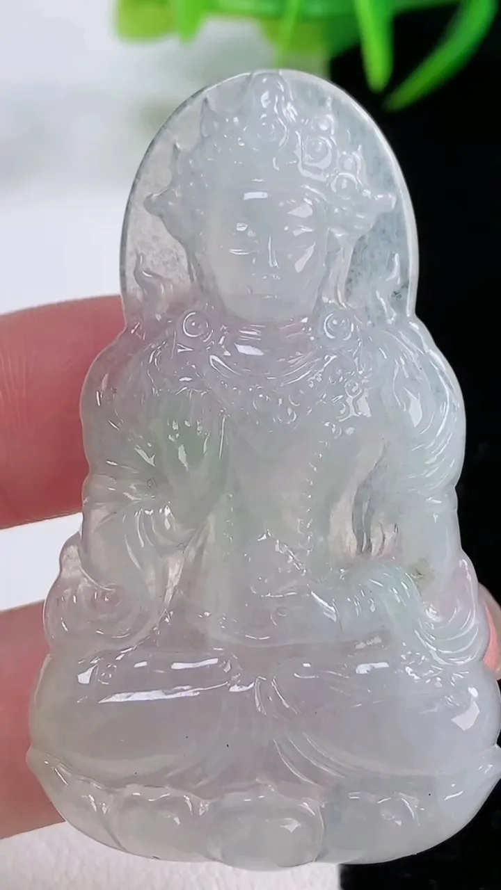 天然A货翡翠观音菩萨吊坠,尺寸52-34.7-5.1,重量:15.88g 11月26日