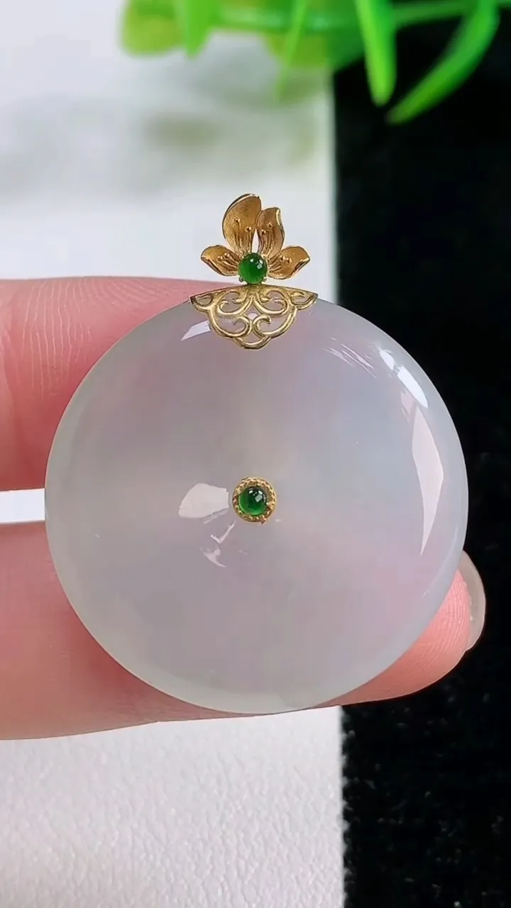 天然A货翡翠种白冰平安扣吊坠,尺寸28.5-5.5,重量:11.08g 11月26日