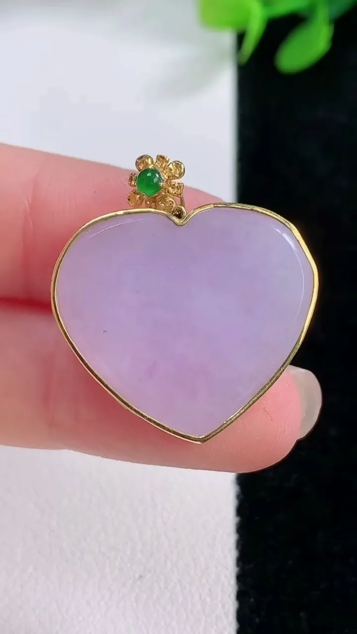 天然A货翡翠18K金紫罗兰心形吊坠,尺寸21.5-24.3-4.7,重量:6.94g 11月29日