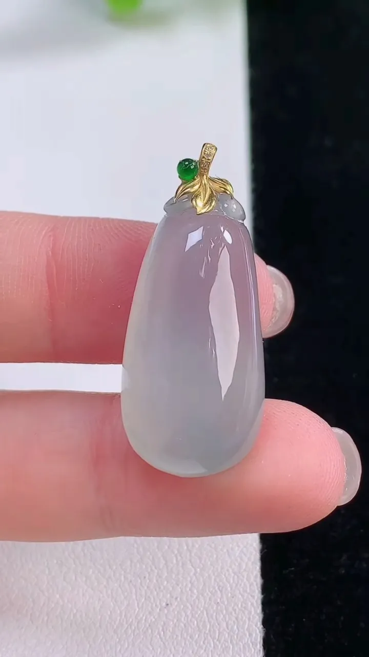 天然A货翡翠种白冰福瓜吊坠,尺寸28-14-7.4,重量:6.08g 11月30日