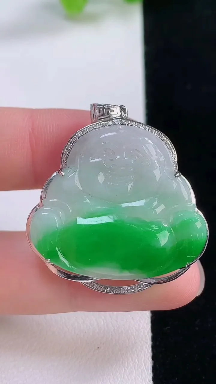 天然A货翡翠佛公吊坠,尺寸34.6-32-6.5,裸石26.4-30.2重量:5.74g 11月30