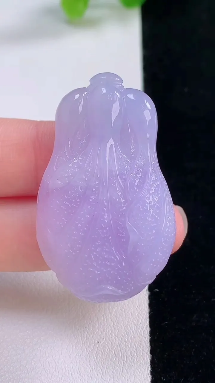 天然A货翡翠18K金紫罗兰白菜吊坠,尺寸43.6-26.6-9.8,重量:19.40g 11月30日