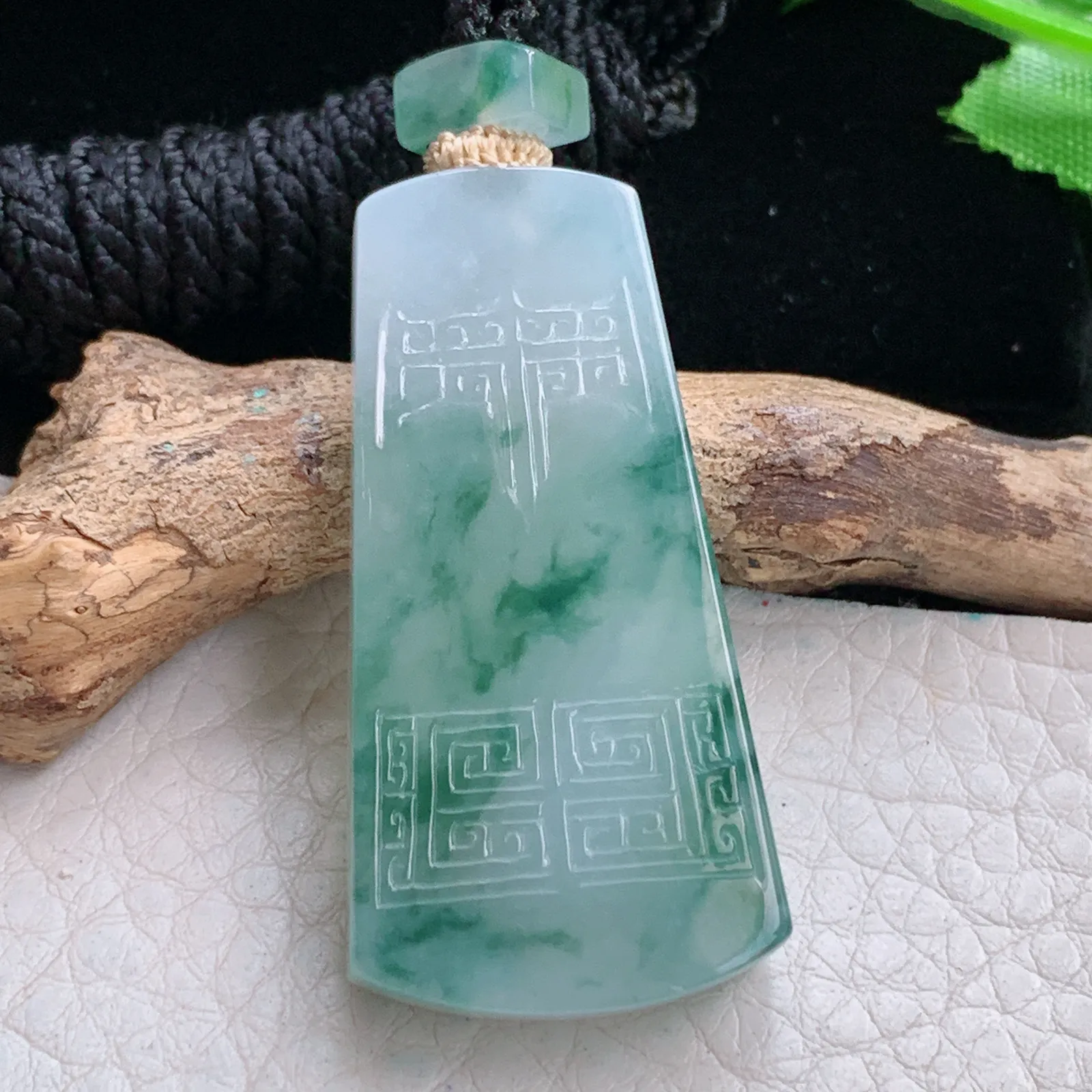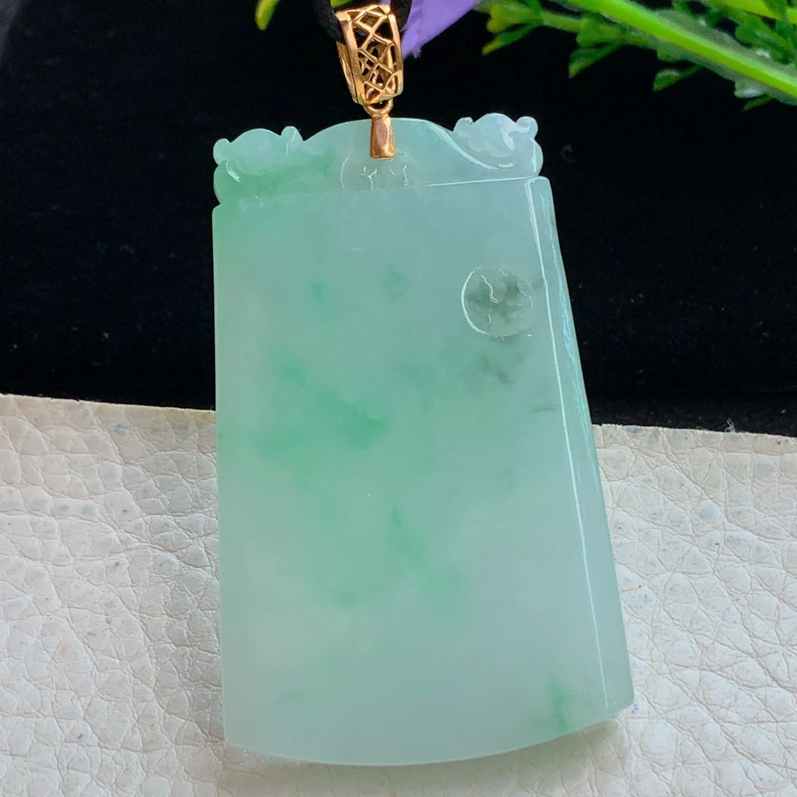 yl实拍59.8*37.2*6.5缅甸翡翠a货冰飘绿平安无事牌玉吊坠 玉挂件