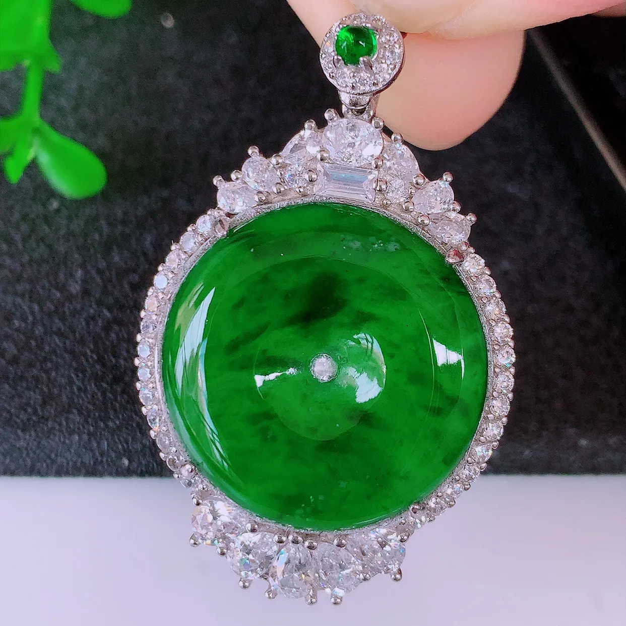 冰透满绿翡翠925银镶嵌平安扣吊坠,自然光实拍,翠色灵动,颜色漂亮,种老水足,品相佳,佩戴佳品!#9