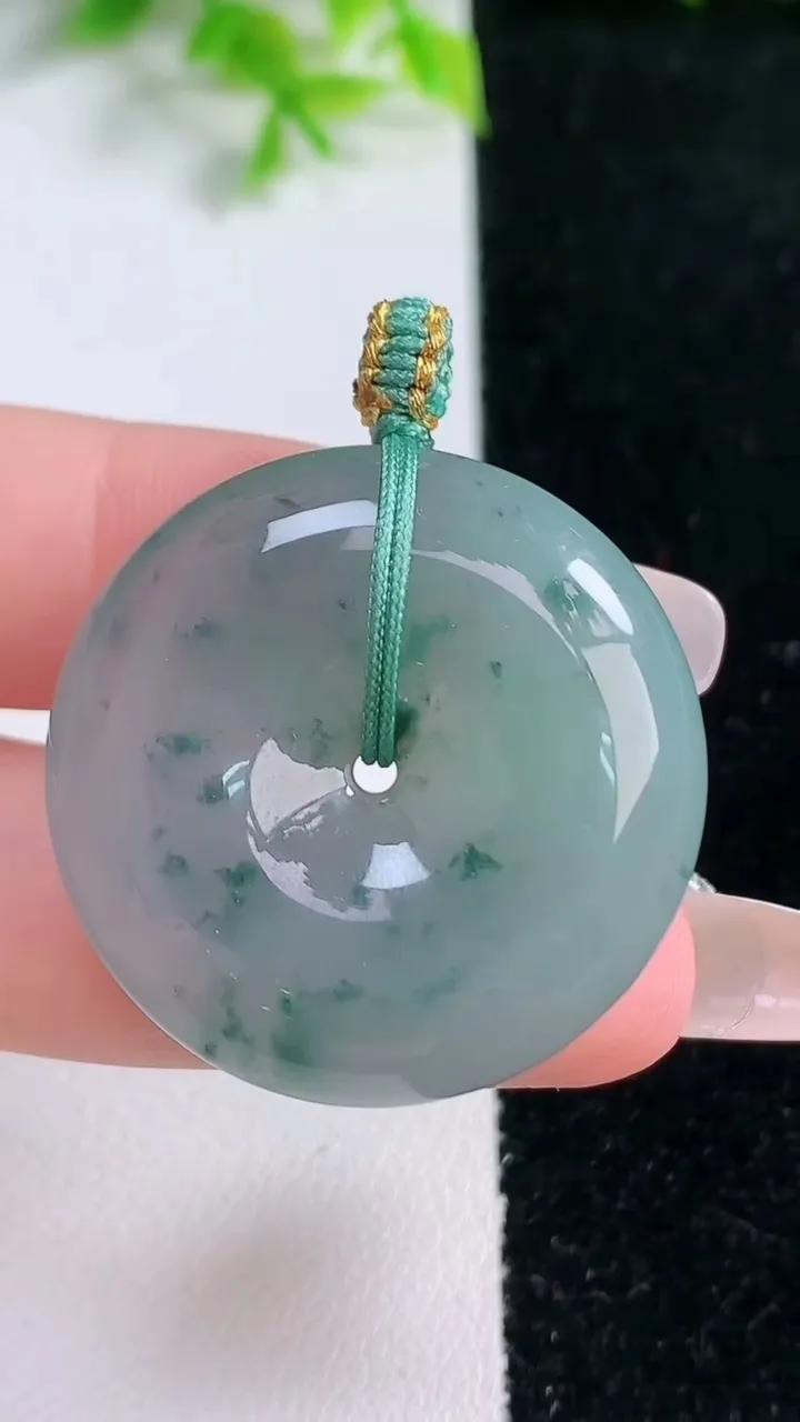 天然A货翡翠冰种飘花平安扣吊坠,尺寸31.3-9,重量:18.64g 1月16日
