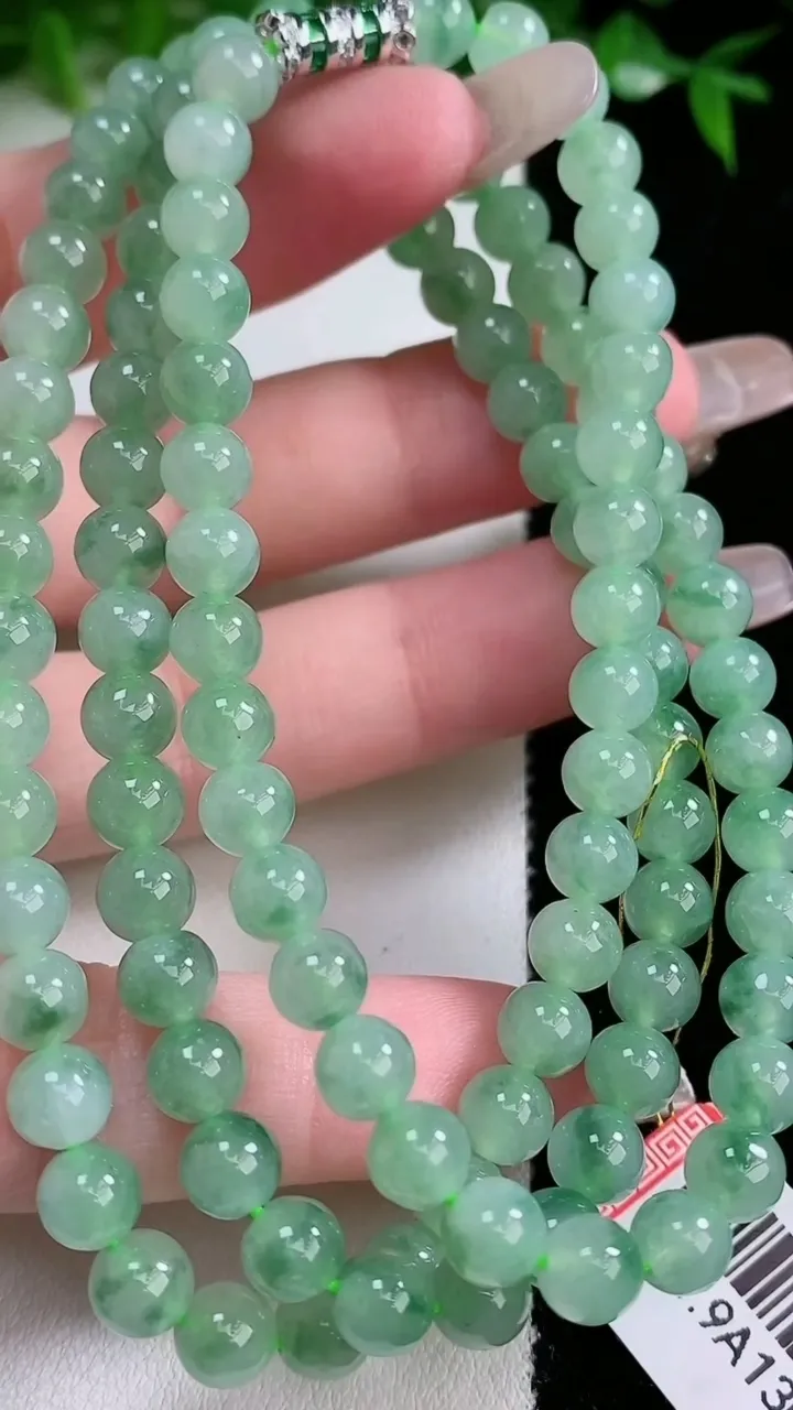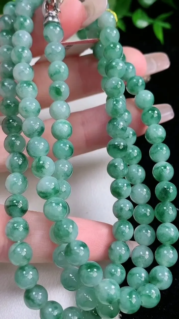天然A货翡翠飘花圆珠项链,尺寸6.2-108颗,重量:54.46g 1月24日