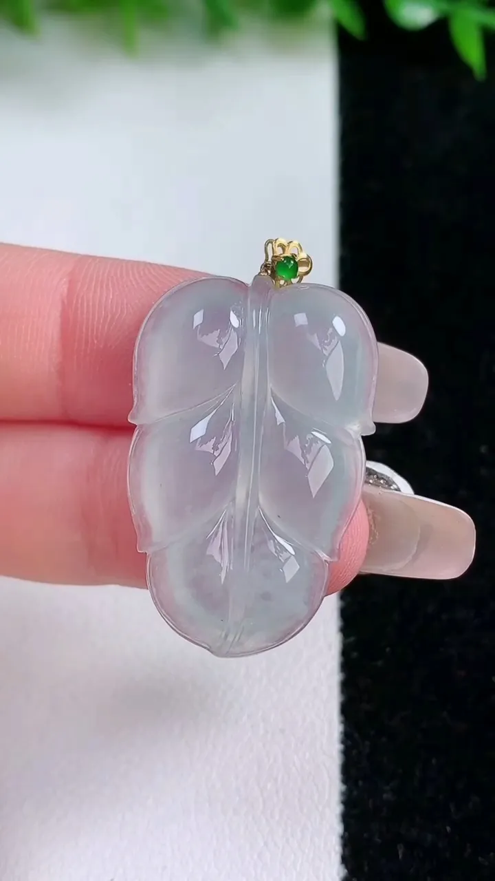 天然A货翡翠金枝玉叶 叶子吊坠,尺寸32-20.2-6,重量:7.42g 1月24日
