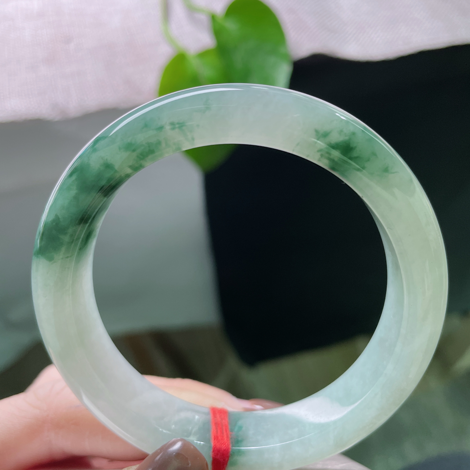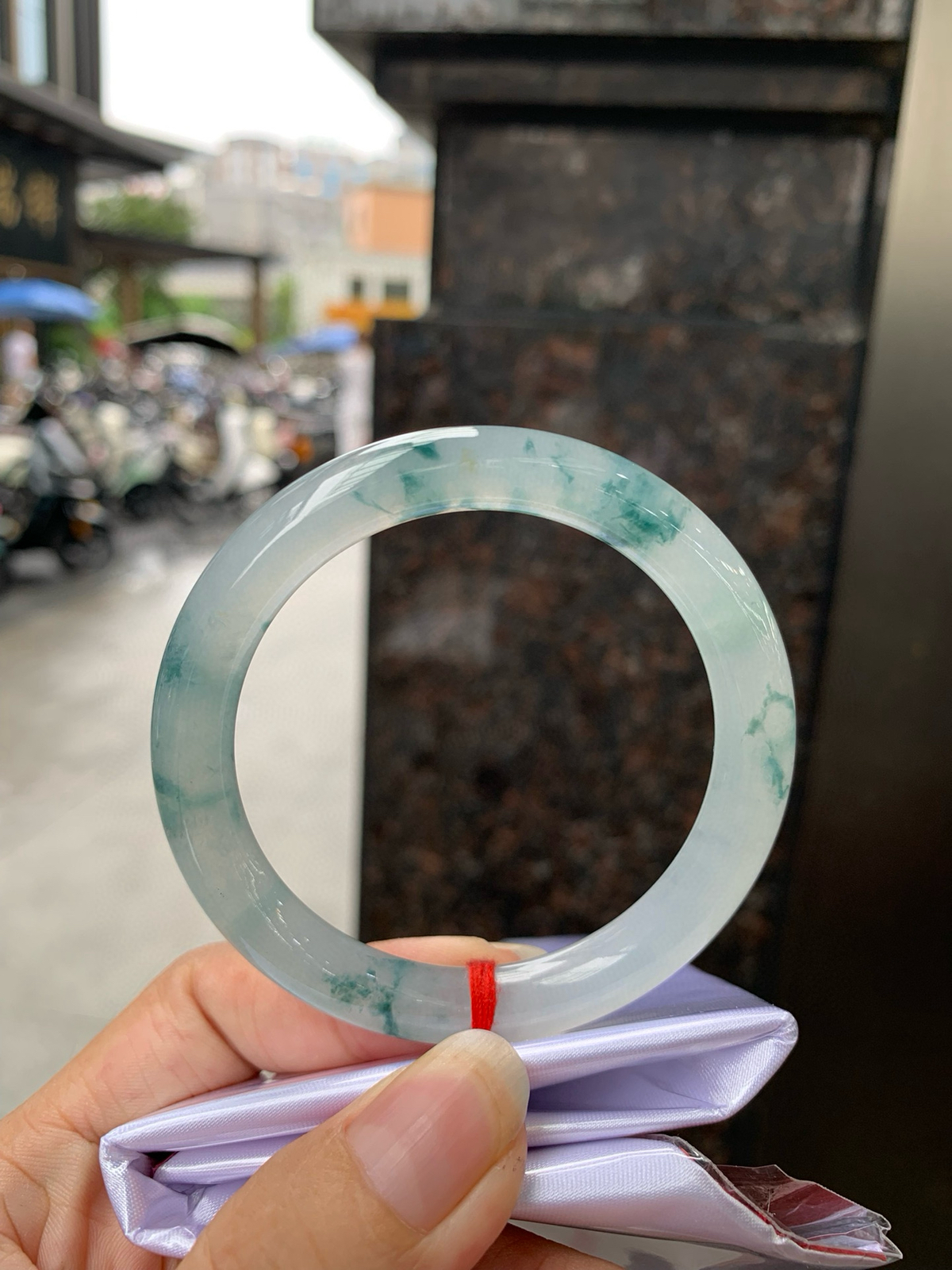 A货天然翡翠冰糯种飘花手镯59圈重量52.54 3月27日