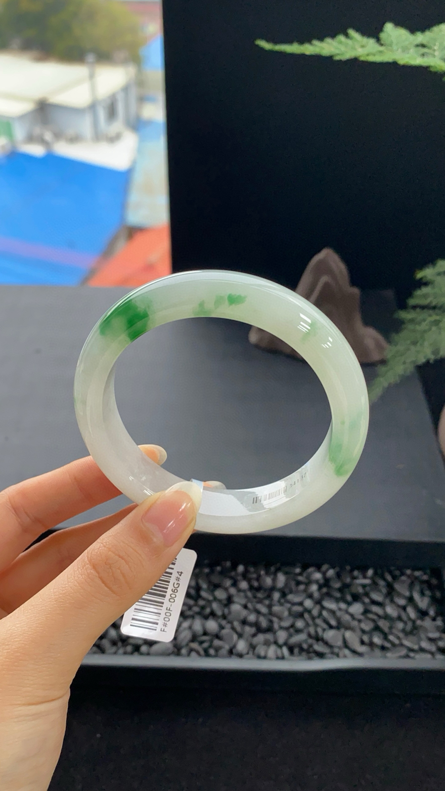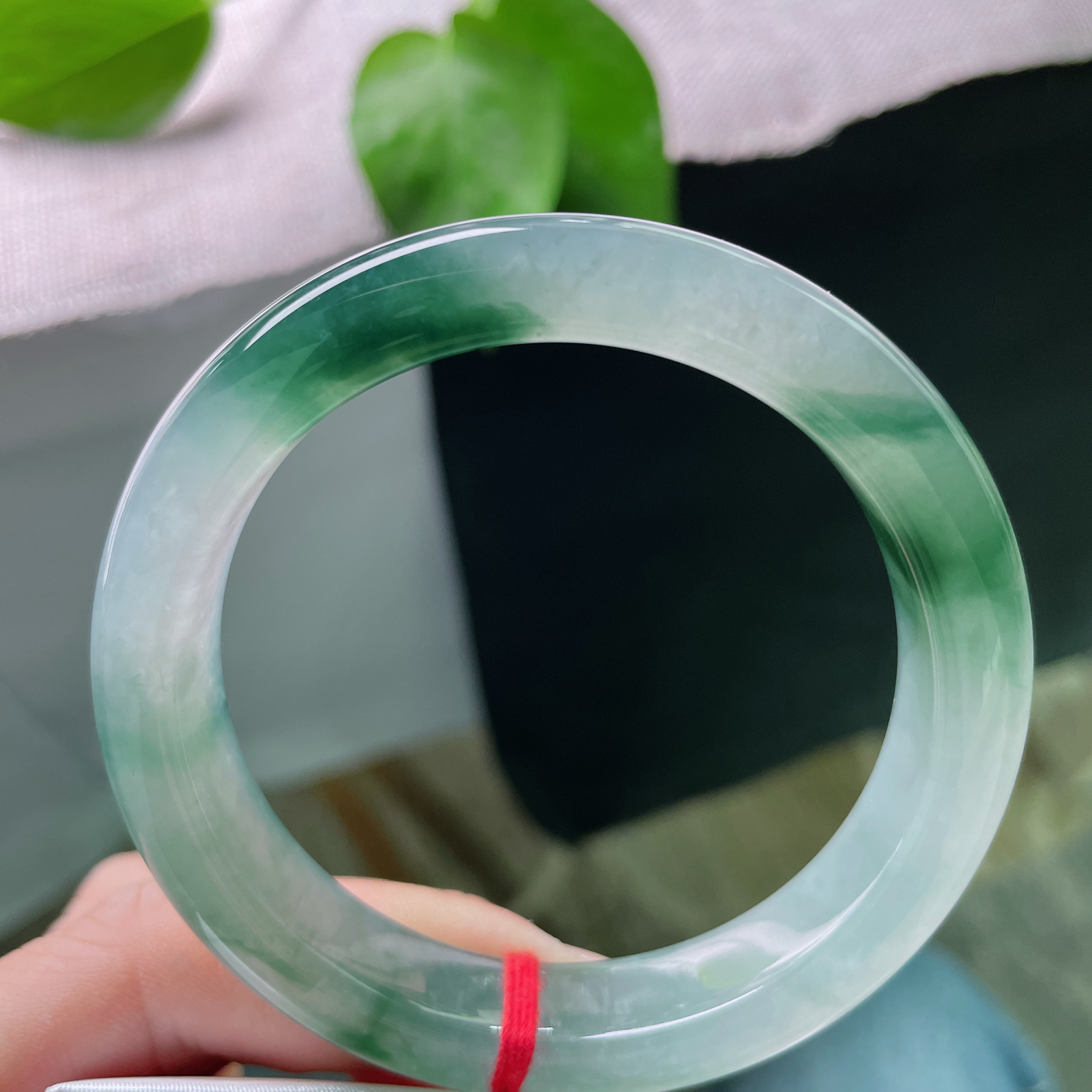 A货天然翡翠冰糯种飘花手镯59圈重量52.54 3月27日