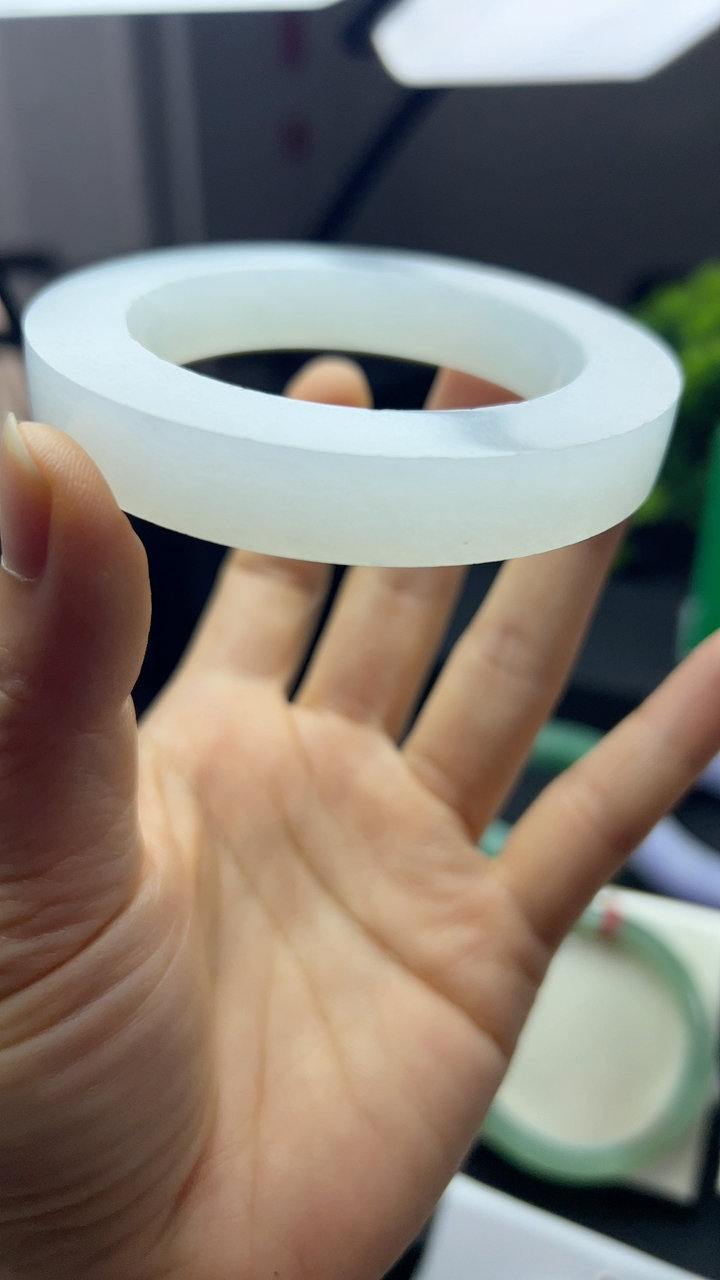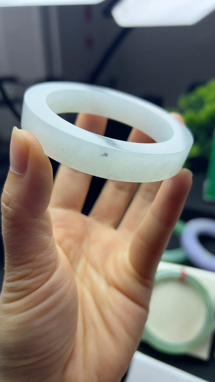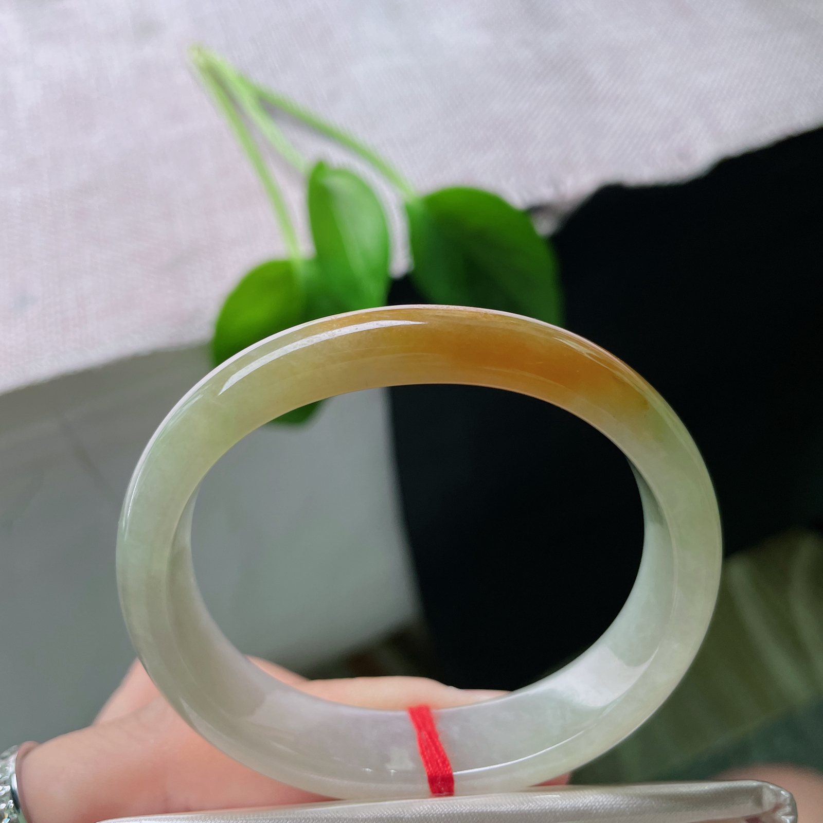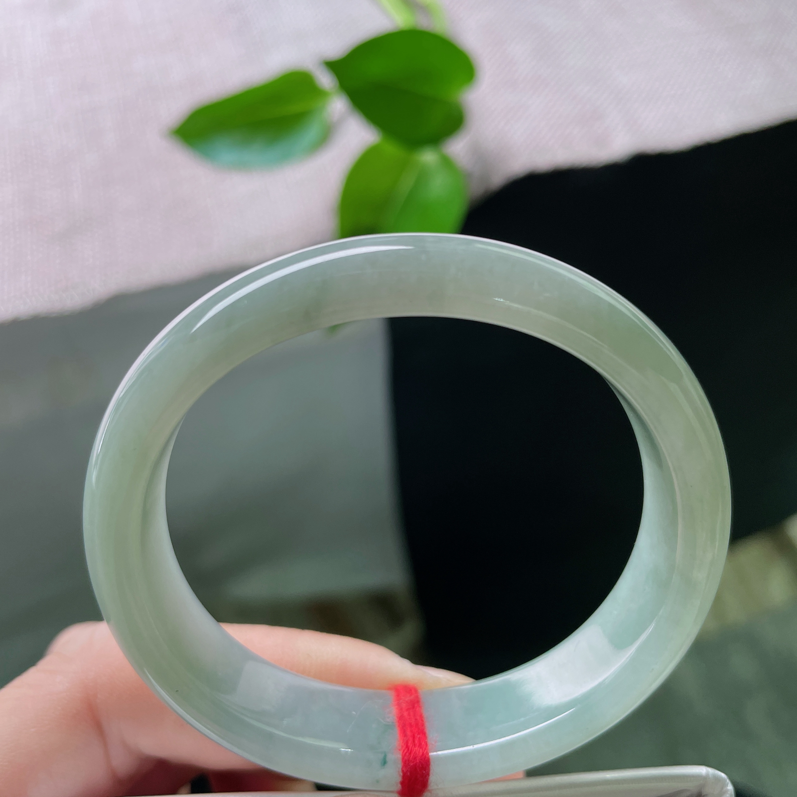 52.9(47.9)10.2/6.7,淡绿底贵妃,水头好,颜色深浅不一,韵味十足,皮纹..