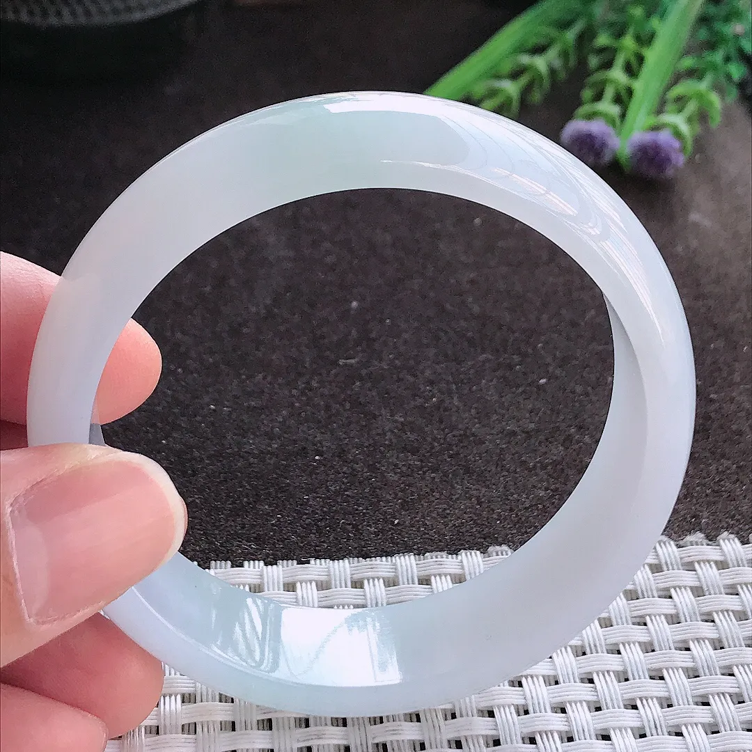 实拍A货翡翠56/15.6/6.8老坑冰胶水灵月光白轮胎手镯宽边玉镯手环